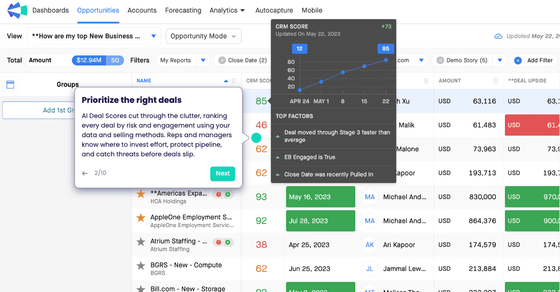 - Risk and slippage detection: Flags deals that are likely to stall or close late.