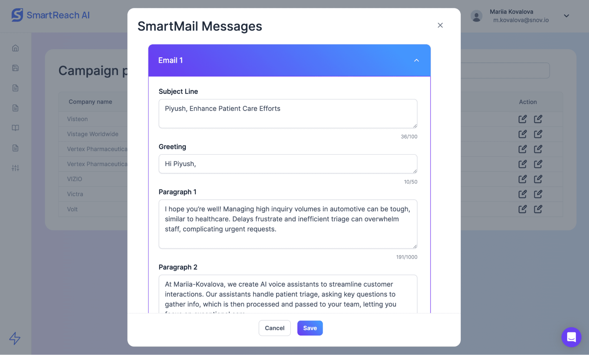 - AI ICP-Based Email Builder: Generate personalized, human-like emails for individual prospects. Provide prompts to the tool to generate multiple draft options with relevant value propositions. Choose the tone and style that best align with your brand or outreach goals.