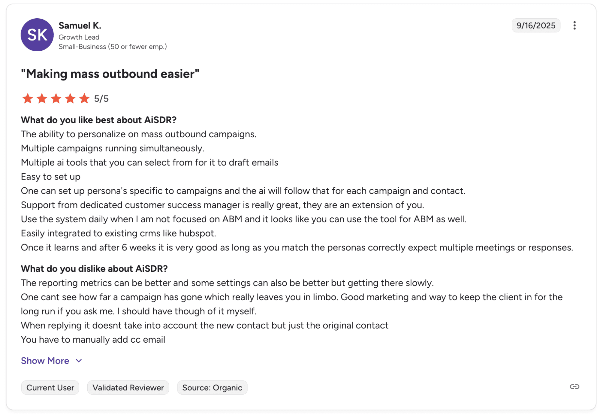 But of course, it only works as a complementary tool rather than a core outbound or AI business development representative platform. I’d recommend using it to complement your sales stack, not replace it.