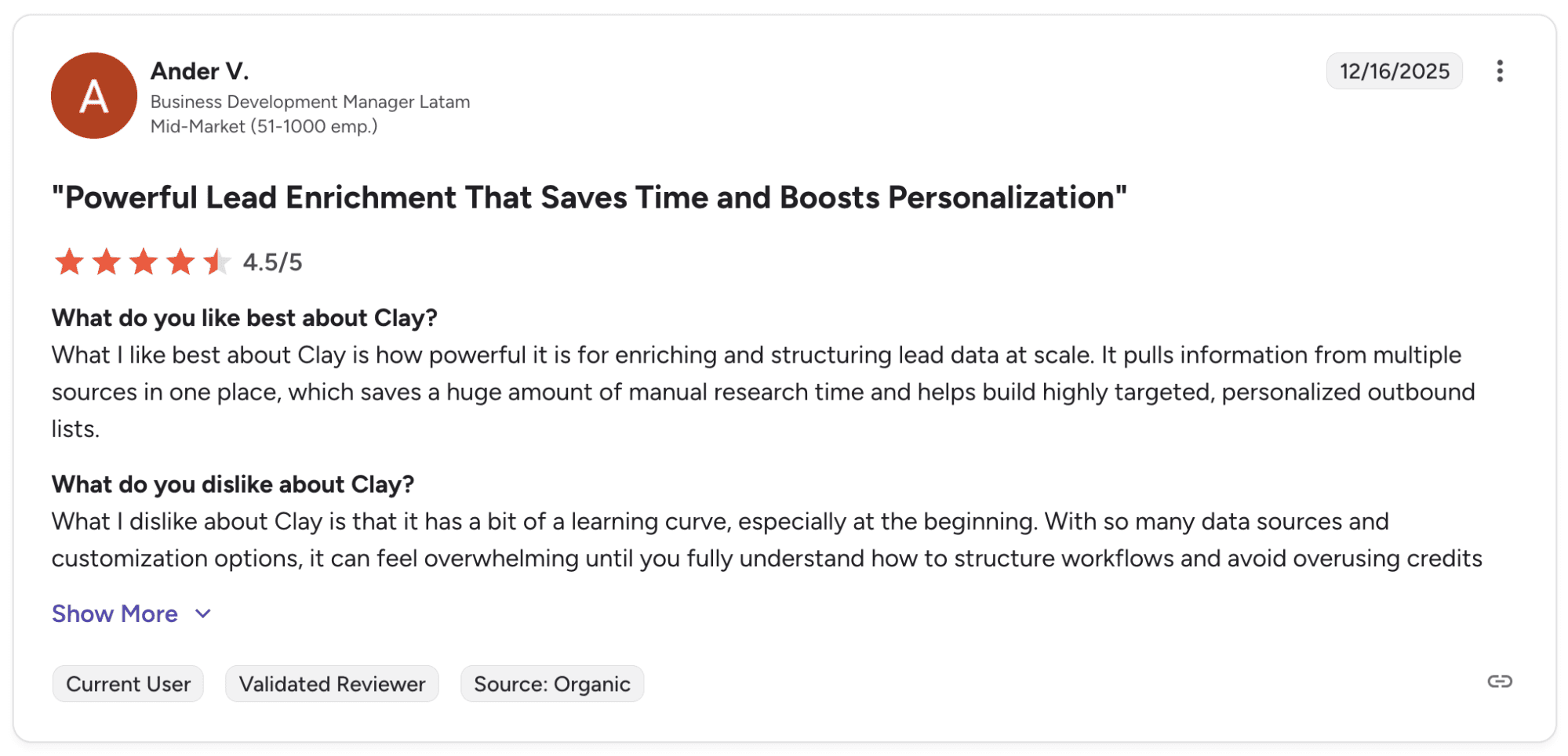 - Native integration with Clay for deeper enrichment