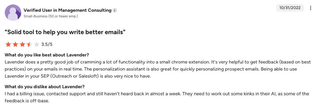 - Lavender is a good choice for individual reps or small teams that want real-time AI coaching to improve the quality, clarity, and personalization of their emails.