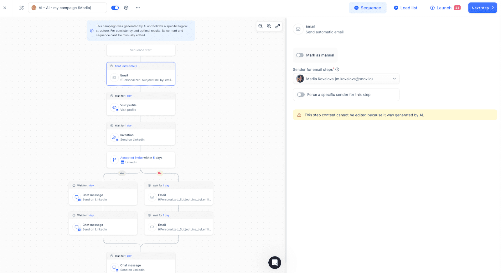 This AI assistant tackles a wide range of tasks, from sequence generation to campaign analysis. However, I feel like it’s more helpful for startupers than for seasoned professionals. For example, every email sequence I’ve generated needed some tweaking on my side.