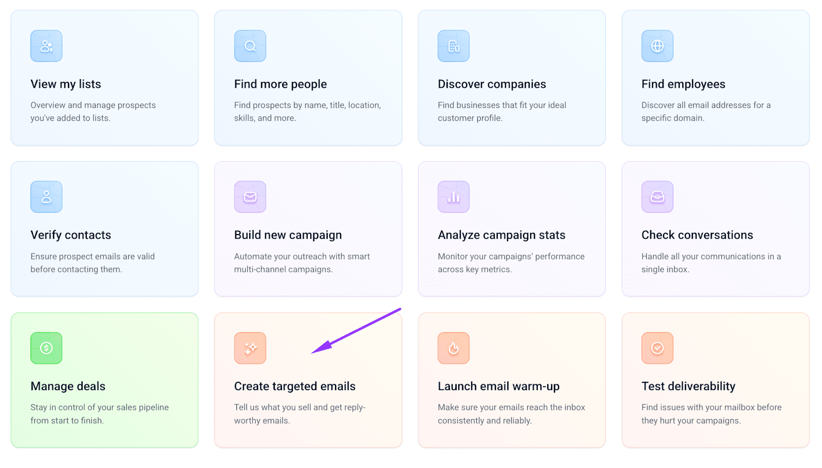 To create your ICP with the Snov.io AI Buyer Persona Generator, choose the “Create targeted emails” option in your app:
