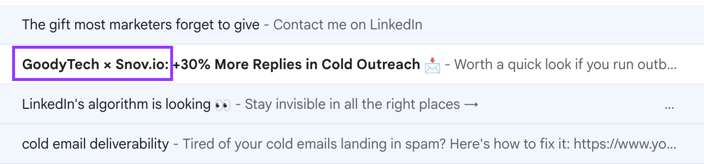 The subject line that has brought us most conversions contained {Prospect’s company} x {Our company} element: