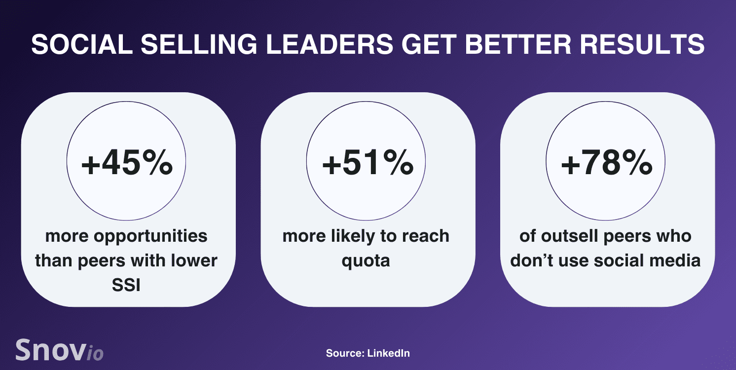 👀 Did you know? Snov.io automatically tracks your Social Selling Index and provides tailored recommendations for daily activity limits. What’s more, because the platform follows safe automation patterns, you can naturally grow your SSI score as your sequences run. |