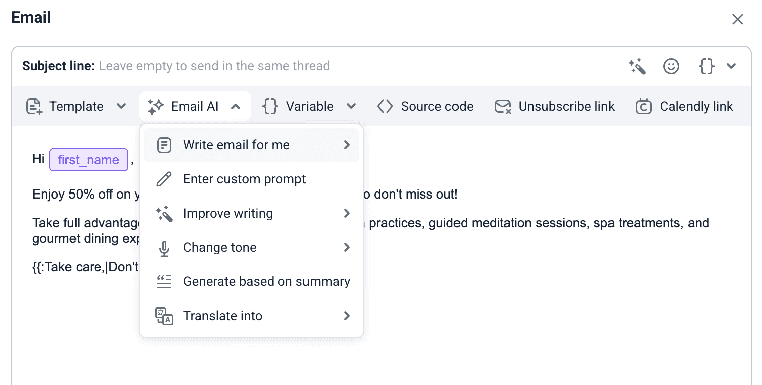With Snov.io, you can add up to 15 test variations to every email in your campaign to choose the option that converts best.