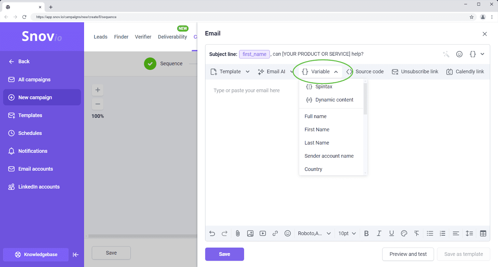 Your outreach should not feel impersonal. Use the collected prospect information for email personalization. Email marketing automation tools like Snov.io, for instance, would insert relevant prospect data — personal name, job position, company name, etc. — while a message is delivered.