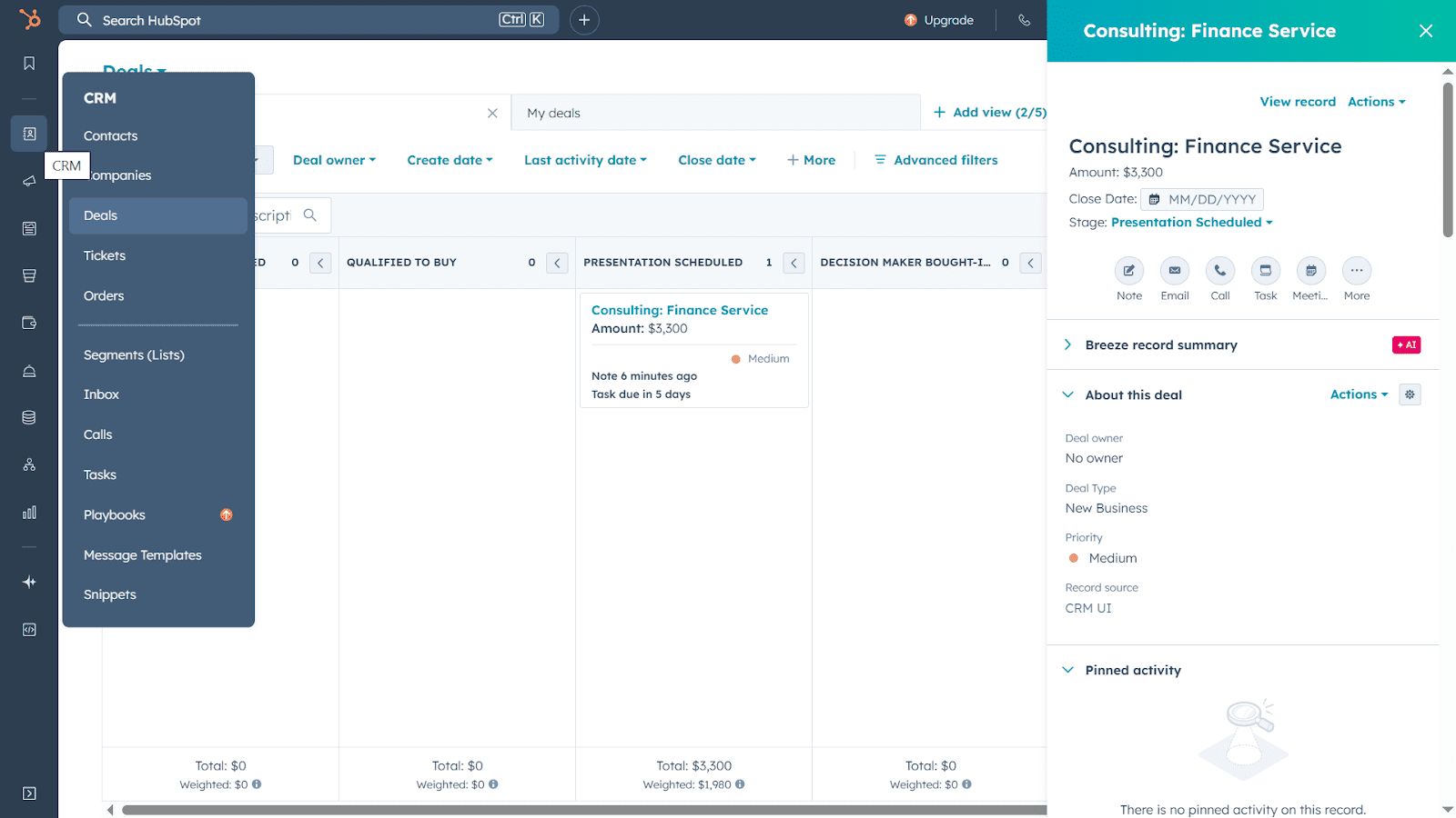 HubSpot offers a dedicated sales CRM that stores contacts, companies, and deals in one place. The platform provides sales pipeline management, automatic activity logging, deal tracking, workflow automation, and reporting capabilities. Plus, the CRM integrates with popular B2B sales tools as well as HubSpot’s Marketing, Sales, and Service Hubs.