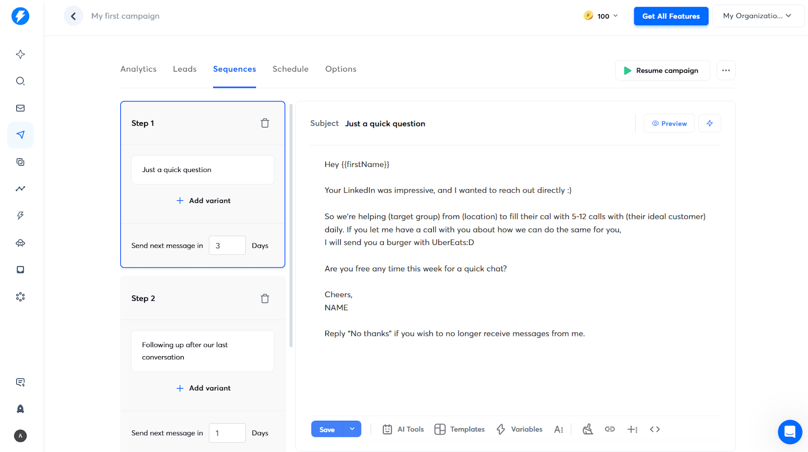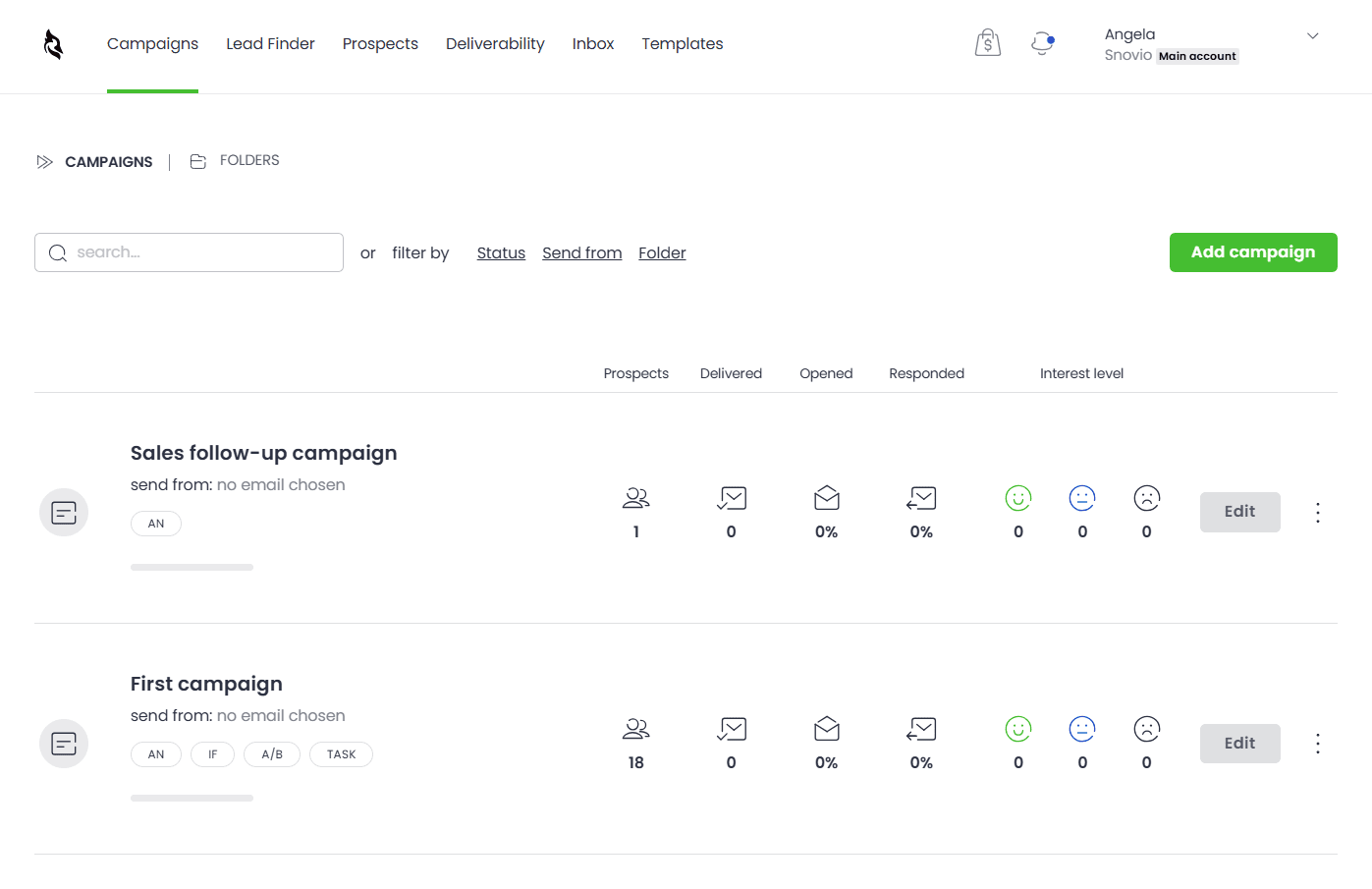 Best for: Startups or agencies that want to send campaigns in high volumes, using cold emails as their primary outreach channel.