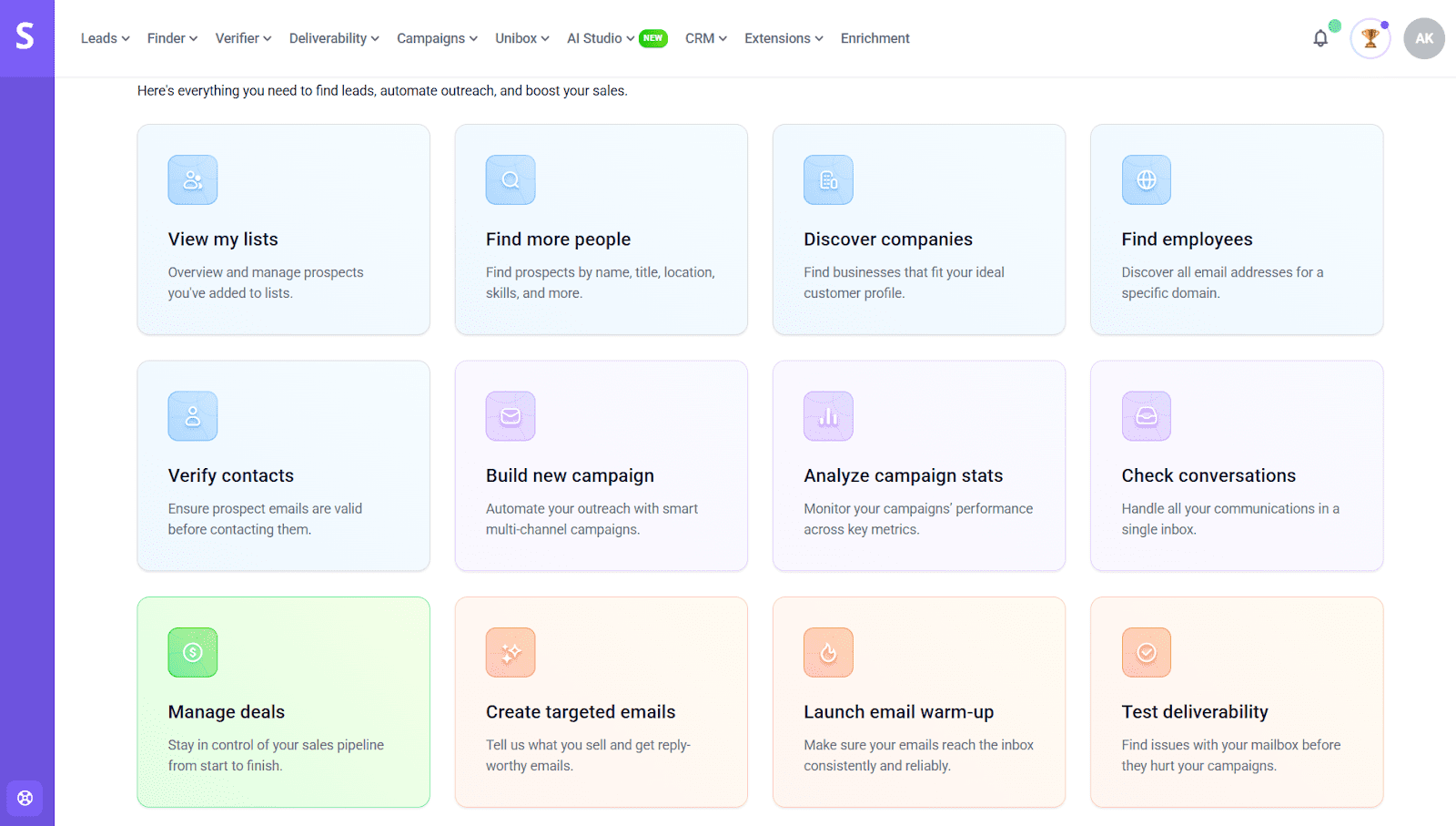 The setup process is straightforward. Besides, the platform provides onboarding tips in each product section, making it easy to get started. However, expect that handling more advanced features, such as multichannel sequencing (including calls) or deliverability setup, may be hard.