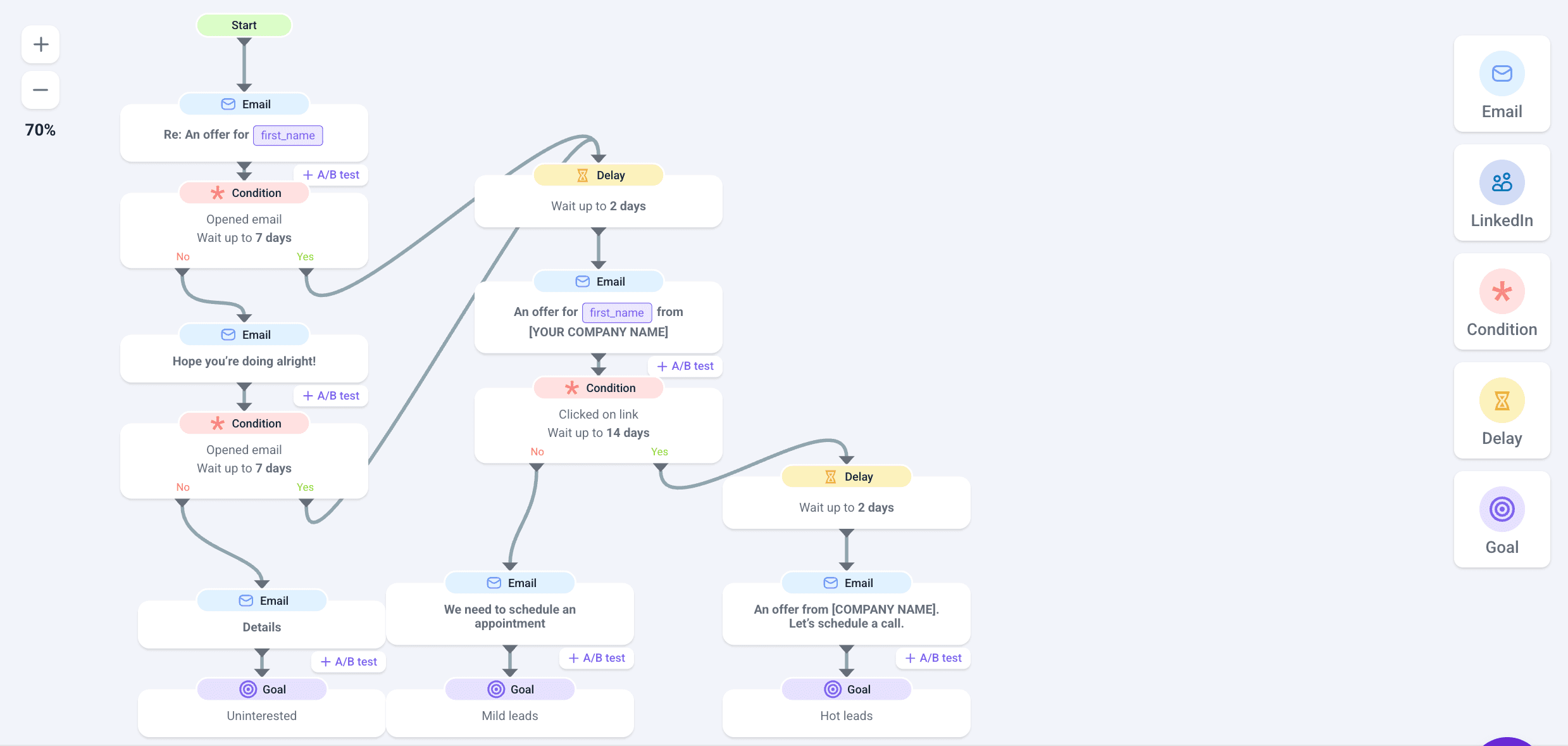 Now, you can set up your Black Friday campaign. I recommend using conditions for better personalization. You have various options, such as opened email, clicked on link, or meeting booked via Calendly.
