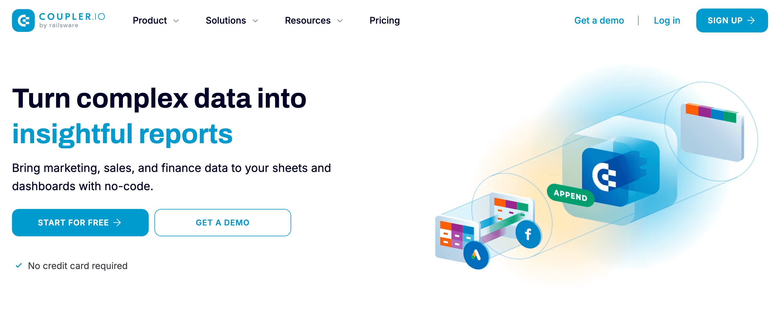 Coupler.io is a data integration and AI analytics platform that helps businesses eliminate manual data exports, improve reporting, and make data-driven decisions. Users can automatically connect 350+ platforms – CRMs, social media, SEO software, etc. – to spreadsheets, BI tools, and data warehouses.