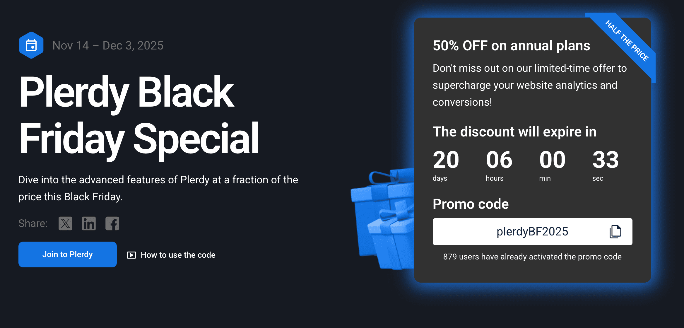 Check out this year’s Black Friday SaaS deal by Plerdy: