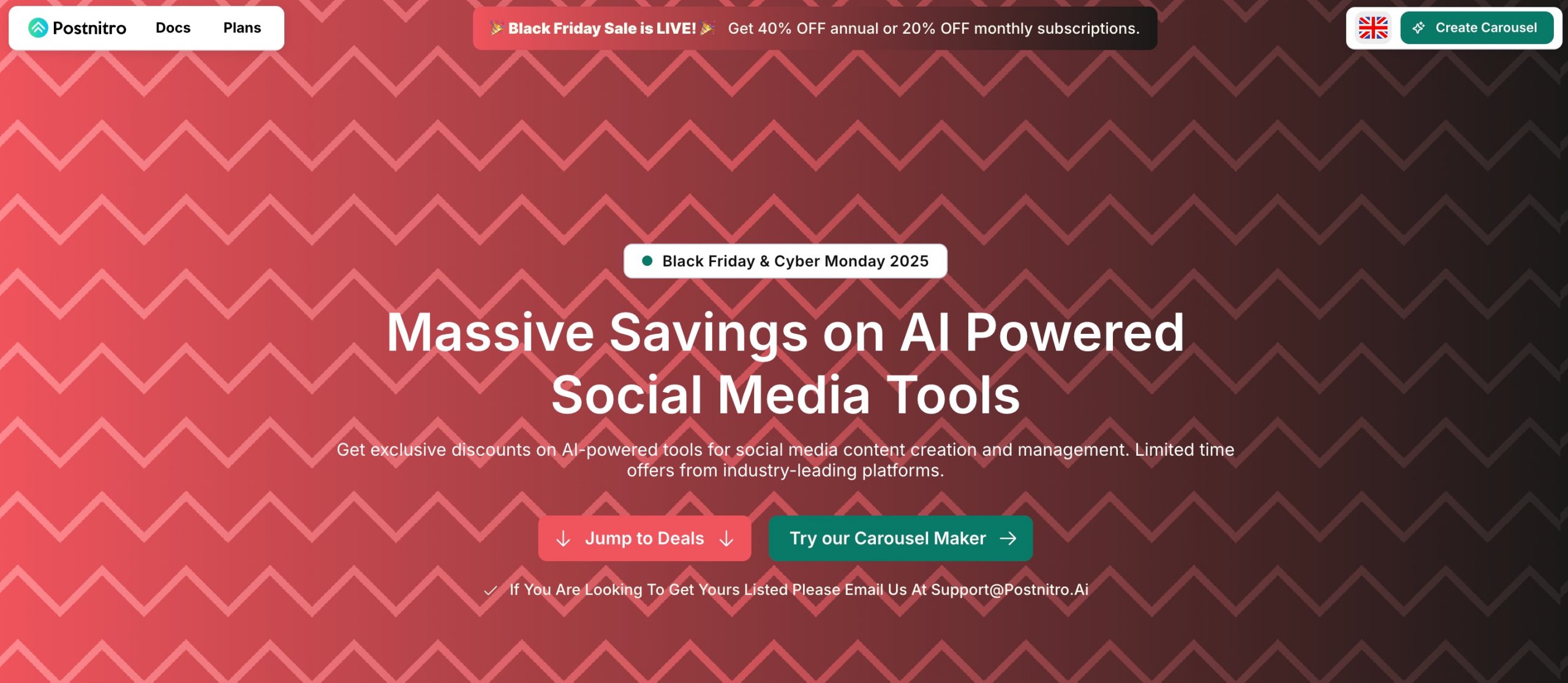 PostNitro is an AI-powered social media content generator that helps creators, marketers, and businesses create stunning, scroll-stopping carousels, carousel videos, and single images in minutes.