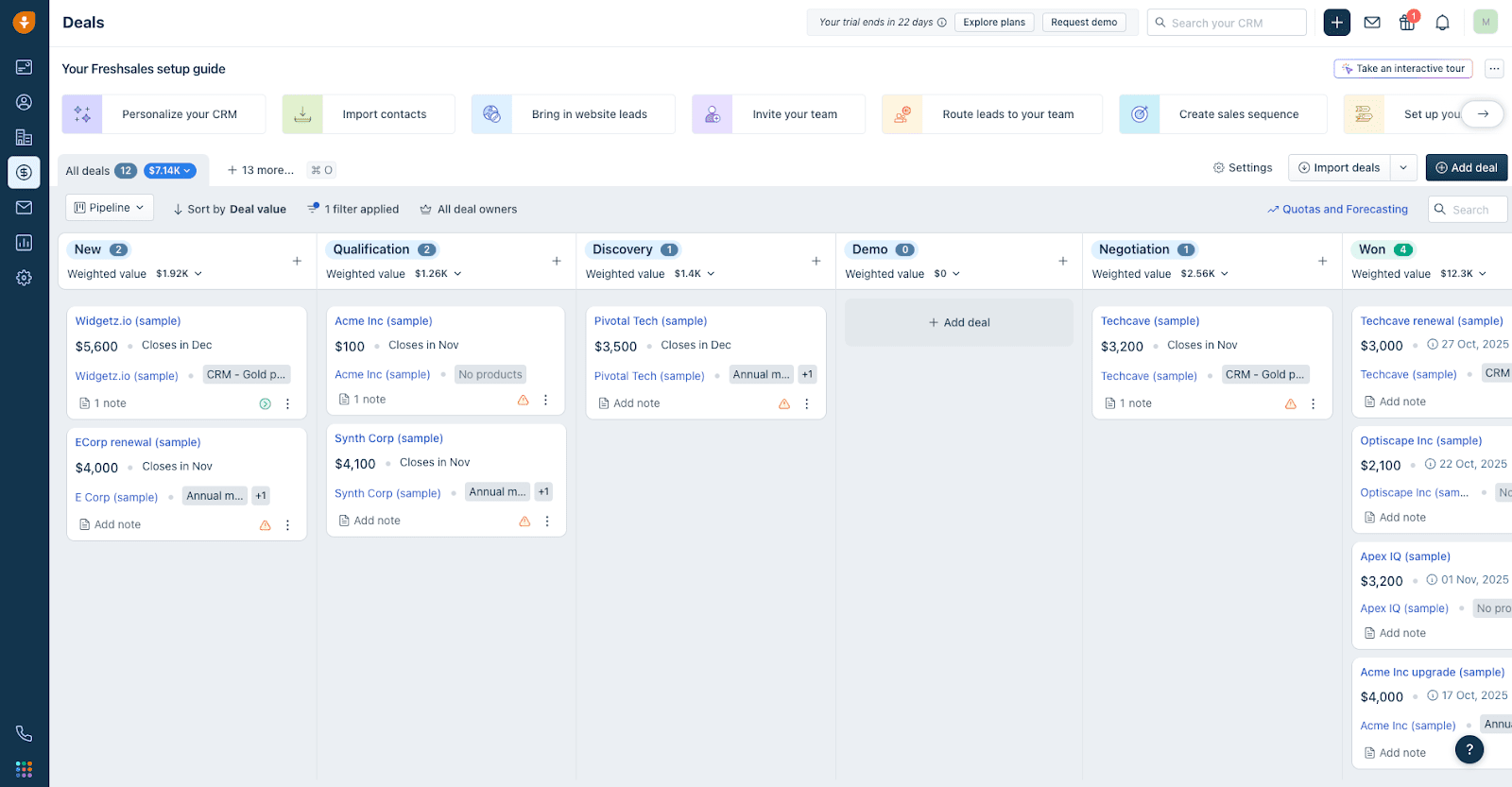 Freshsales looks like a modern CRM. Profound customization, though, can get tricky. Adjusting reports or creating more advanced automations takes extra time, especially if you’re not very technical. In my opinion, if you want a simple CRM without robust customization capabilities, there are other sales enablement platforms offering the same functionality for free.