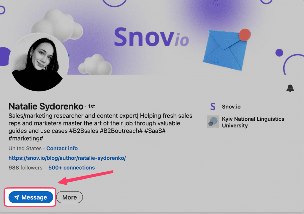 | 🤝 Dica pro: O InMail é excelente para abordar leads com alto potencial de conversão, mas que continuam fora da sua rede. Por exemplo, você pode enviar um InMail para um gerente de marketing de uma empresa do seu setor-alvo, mostrando como sua solução pode ajudar a gerar leads mais qualificados ou otimizar o processo de prospecção. Com a Snov.io, você também pode personalizar seus InMails para causar uma impressão ainda melhor logo no primeiro contato. |