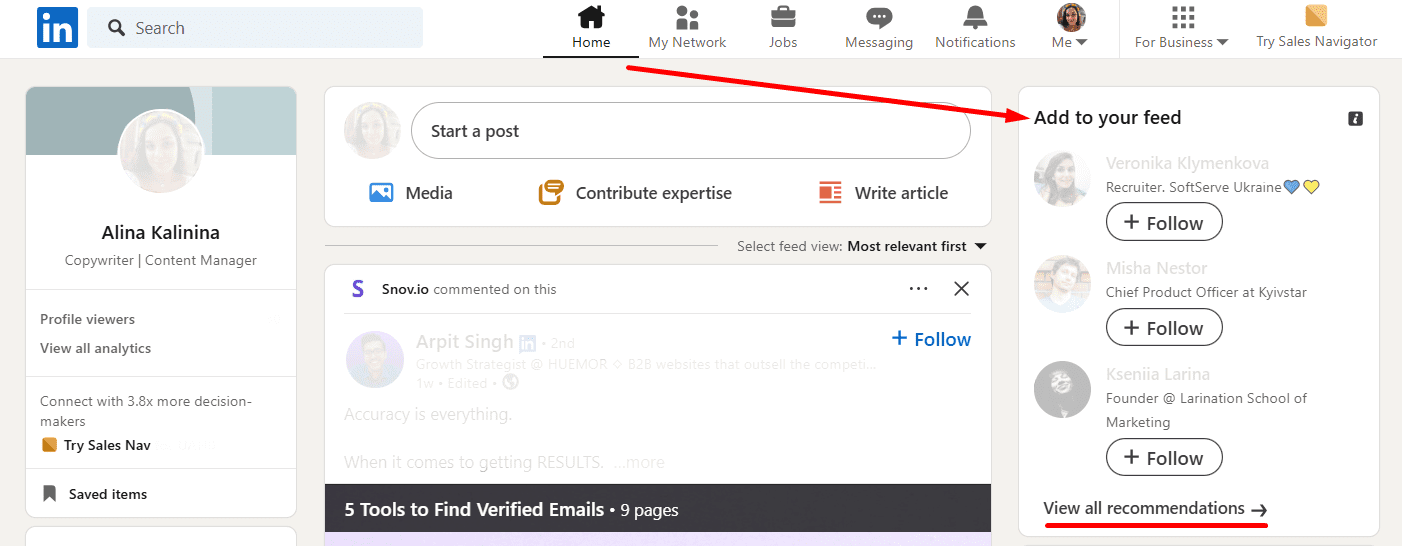 Essa é uma das funções mais úteis da plataforma e pode te ajudar muito se você acabou de criar seu perfil e ainda não tem uma lista de contatos. As recomendações do LinkedIn mostram pessoas que você pode conhecer com base em informações do seu perfil, como formação, experiência profissional ou interesses.