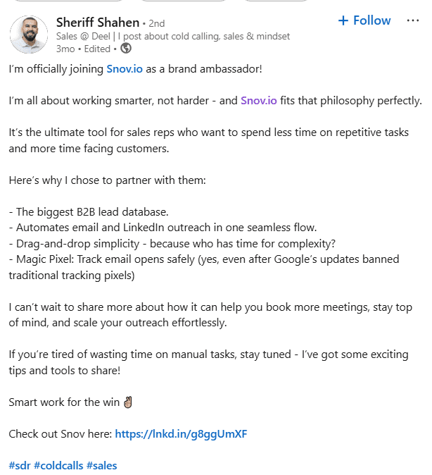 Se precisar de uma mãozinha nesse processo, conte com a Snov.io para automatizar suas vendas no LinkedIn! 🚀