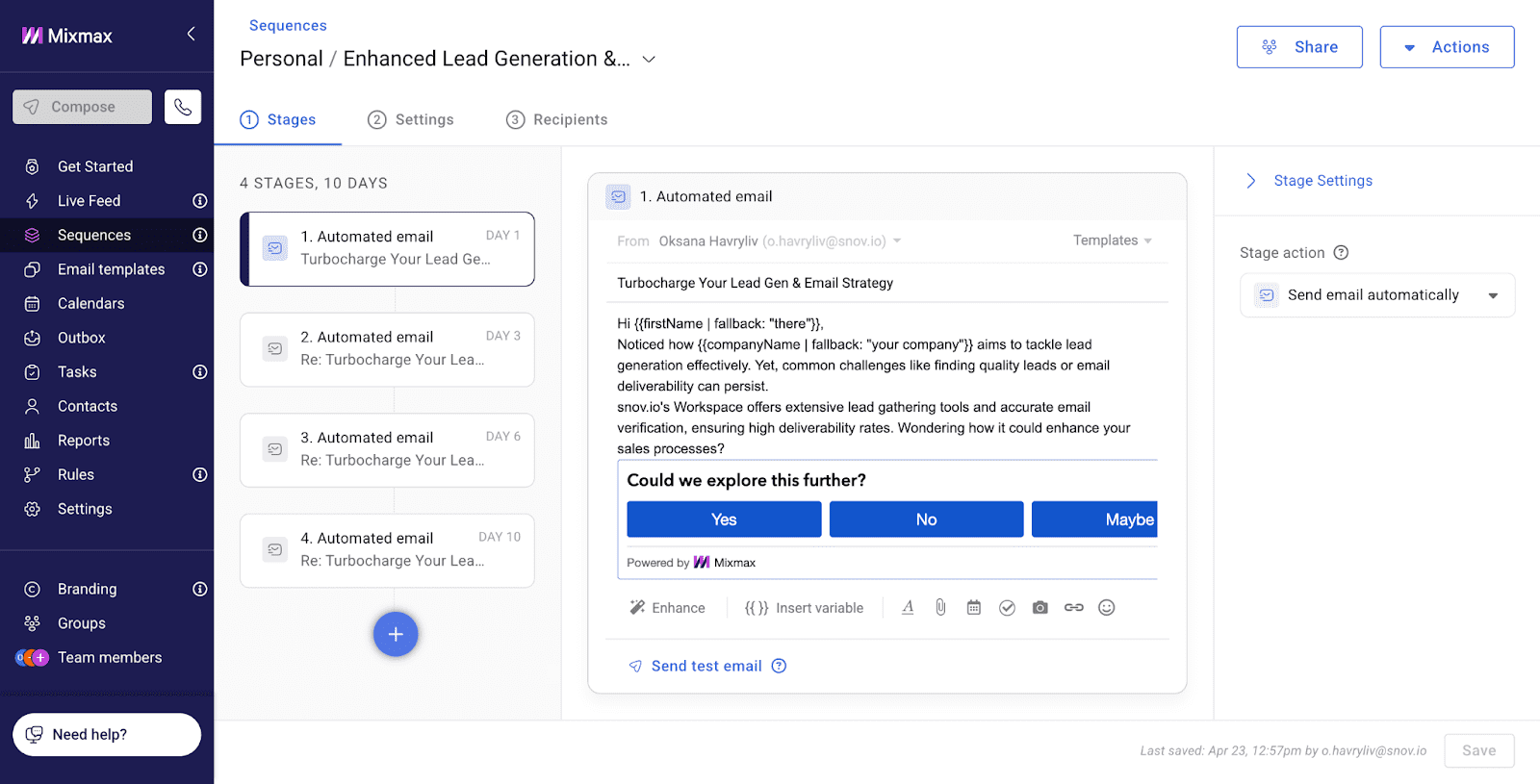 - Mixmax – solução de automação de e-mail com elementos interativos, incluindo enquetes e links de calendário, que suportam sequências multicanal.