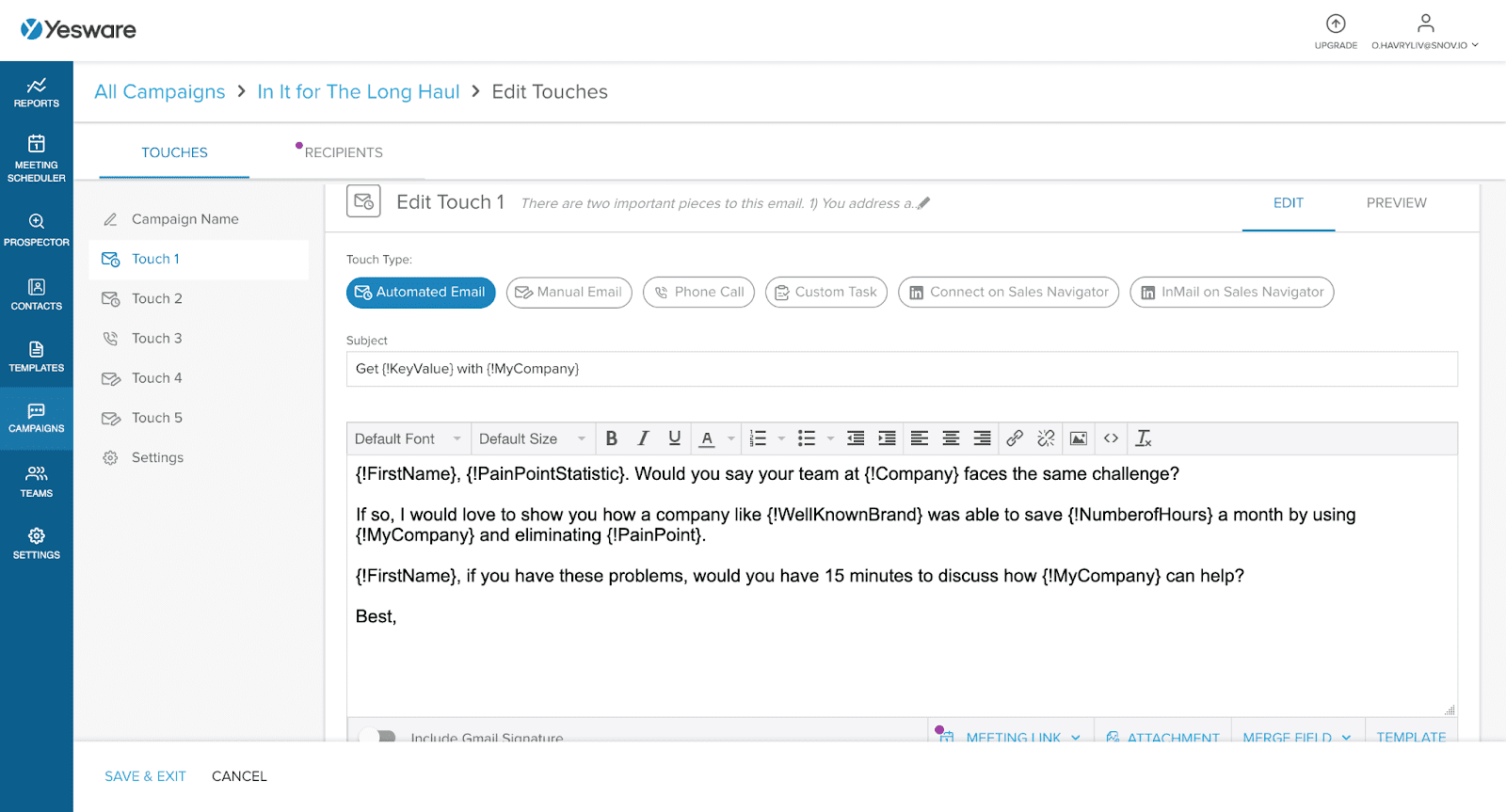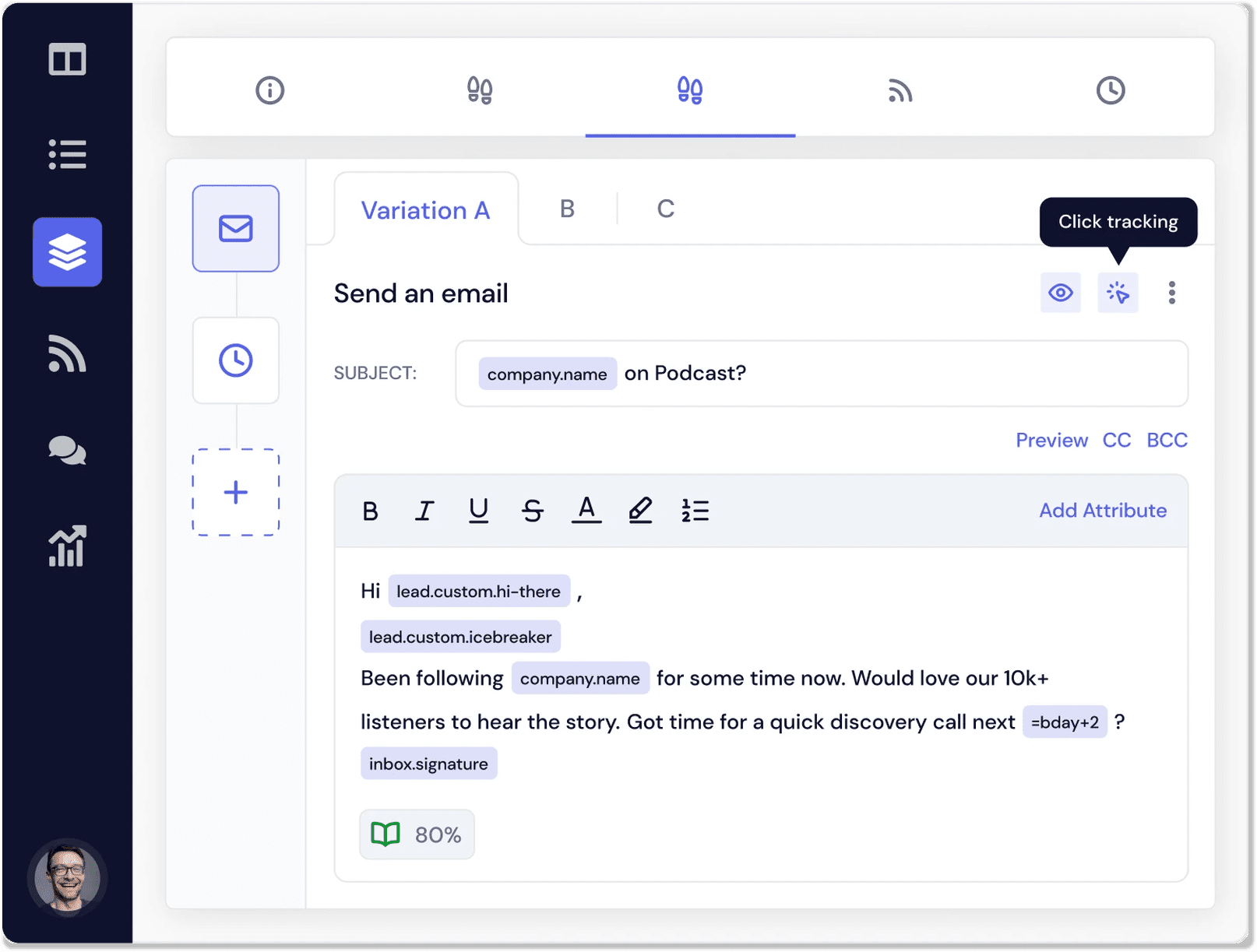 A personalização é essencial para atingir suas metas de vendas. Nesse sentido, um bom software não te obriga a escolher entre personalizar e-mails e escalar sua abordagem.