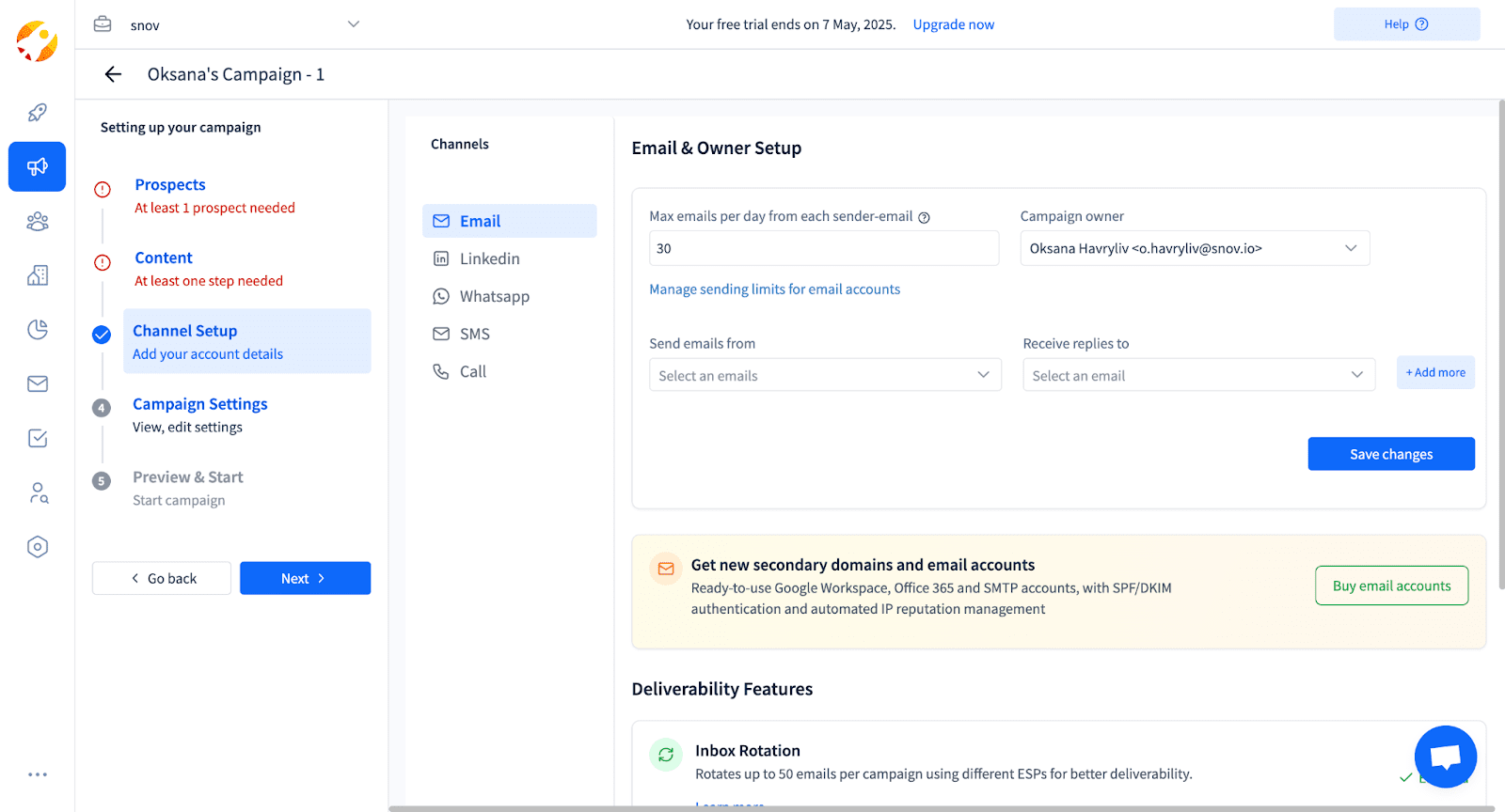 - Contas ilimitadas: execute várias campanhas de e-mail frio a partir de quantas contas precisar.