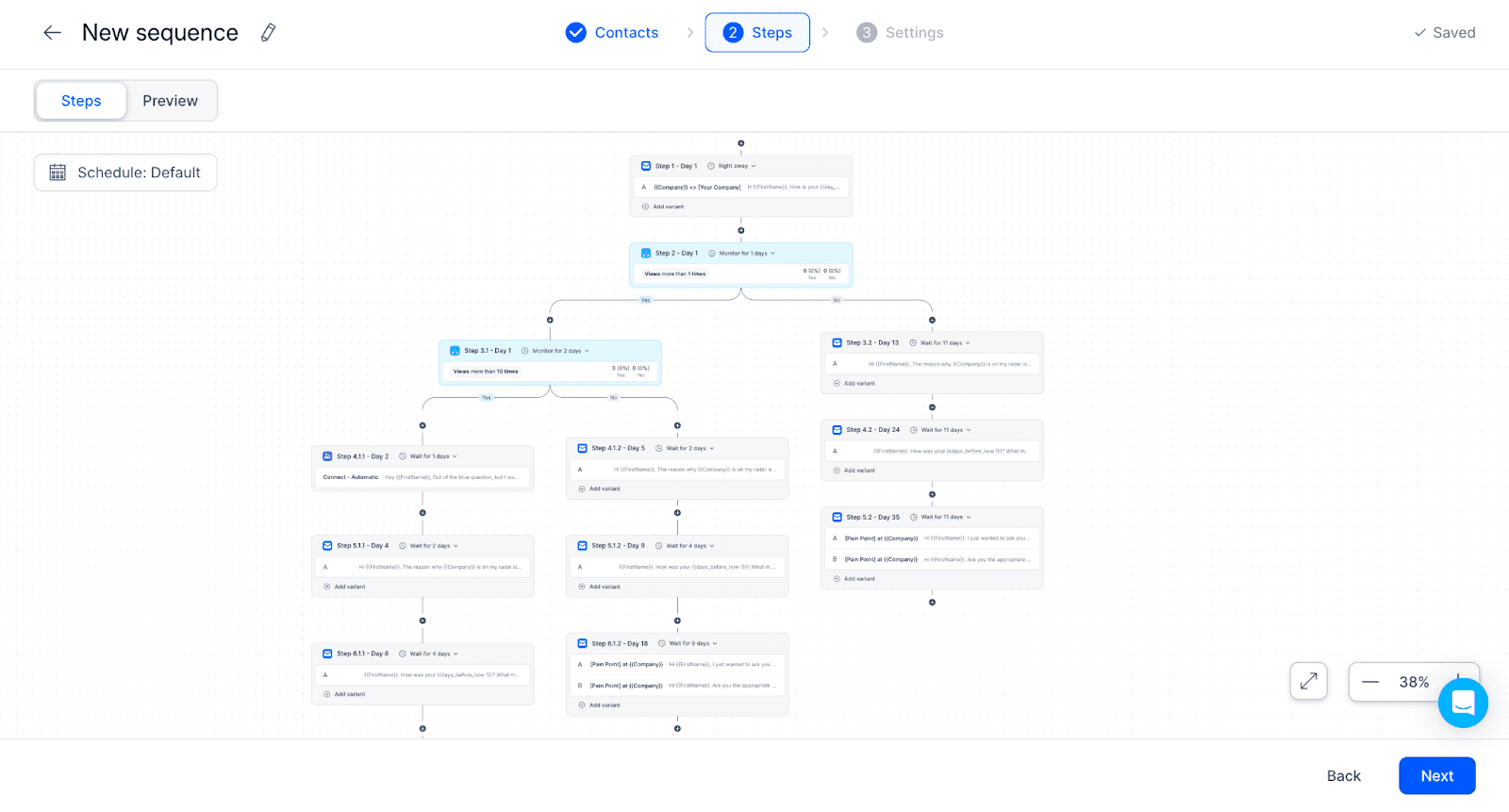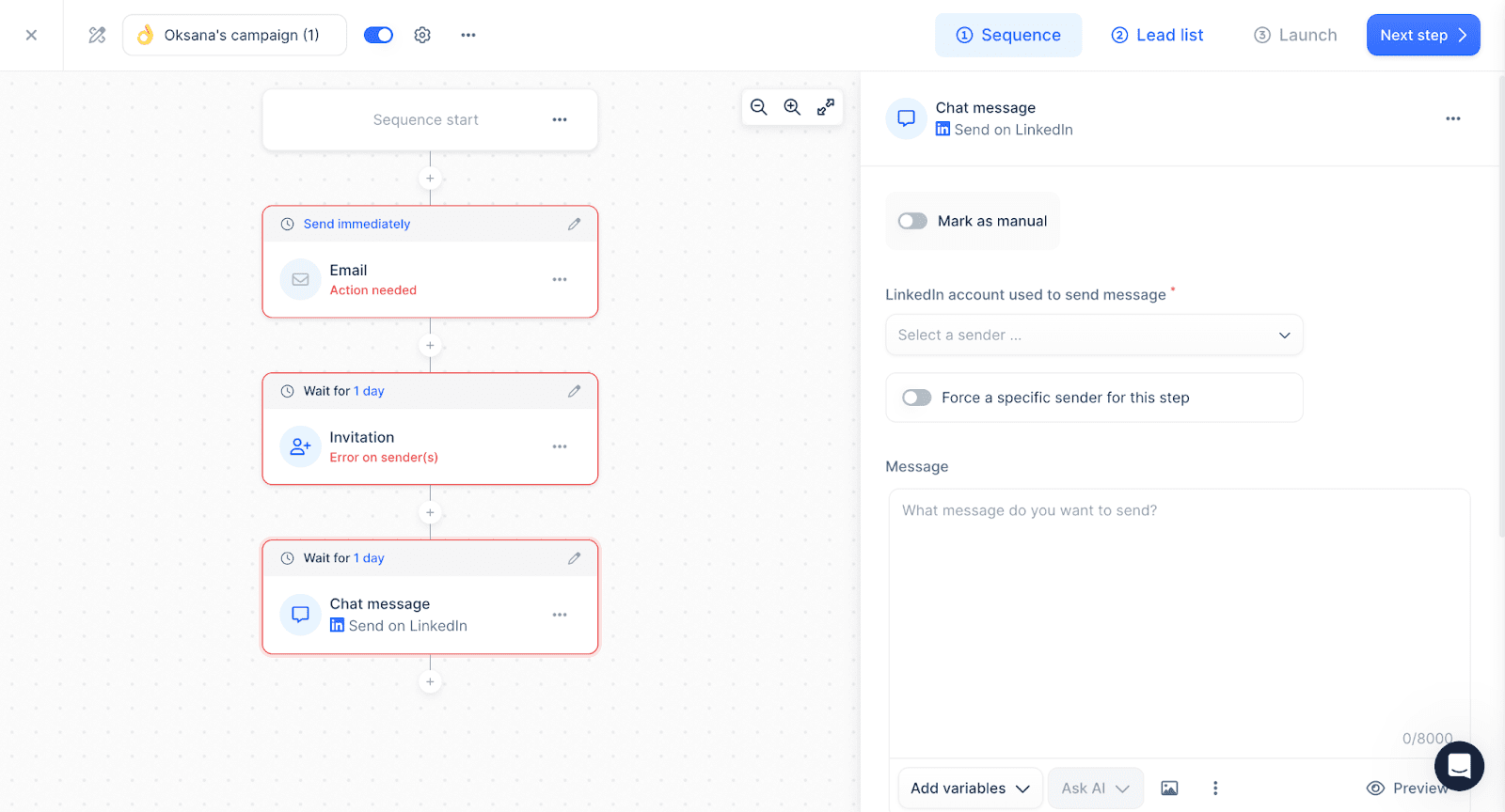 Crie sequências automatizadas de e-mail e LinkedIn com follow-ups personalizados, mantendo seus leads engajados em diferentes plataformas. Depois, realize testes A/B de suas campanhas de e-mail para determinar os cenários mais eficazes e, assim, melhorar o desempenho das suas sequências.
