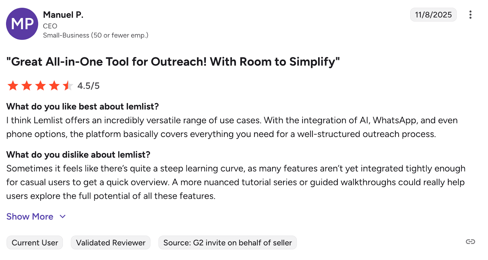 Os usuários adoram a Snov.io porque esse conjunto de ferramentas de cold email torna o contato com clientes simples e eficaz. Essas pessoas ainda apreciam o serviço tudo em um, pois podem encontrar leads, verificar e-mails e gerenciar campanhas numa única plataforma. Além disso, a equipe de suporte ágil é frequentemente elogiada por sua genuína prestatividade quando surgem problemas.