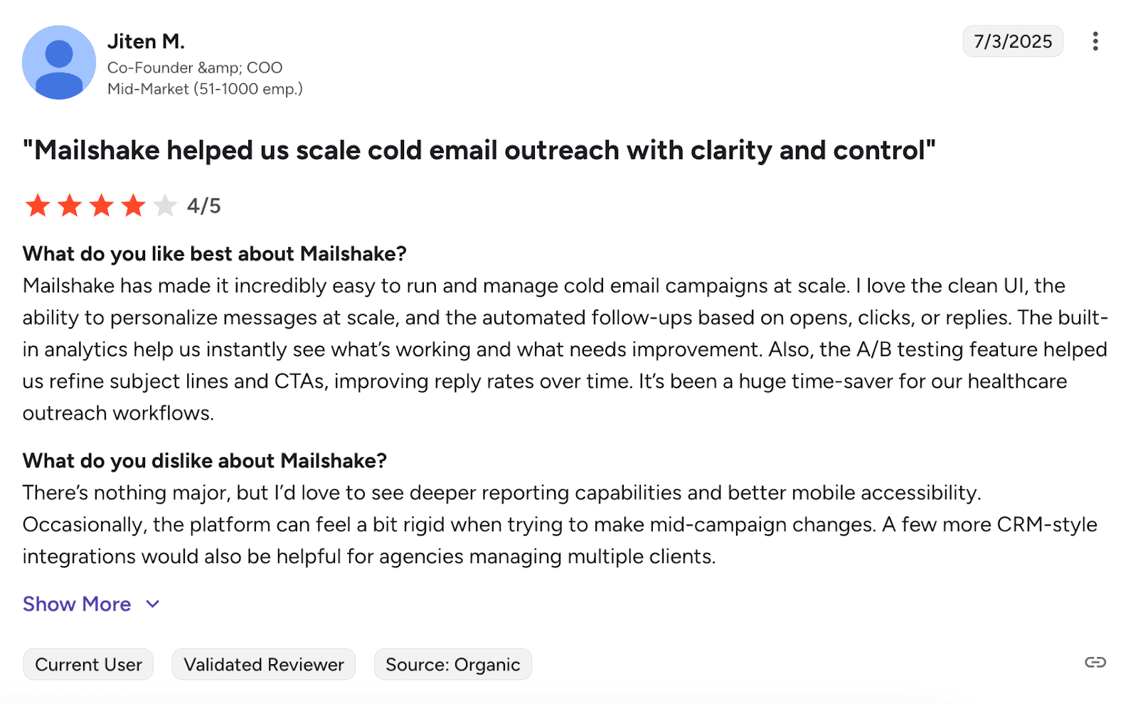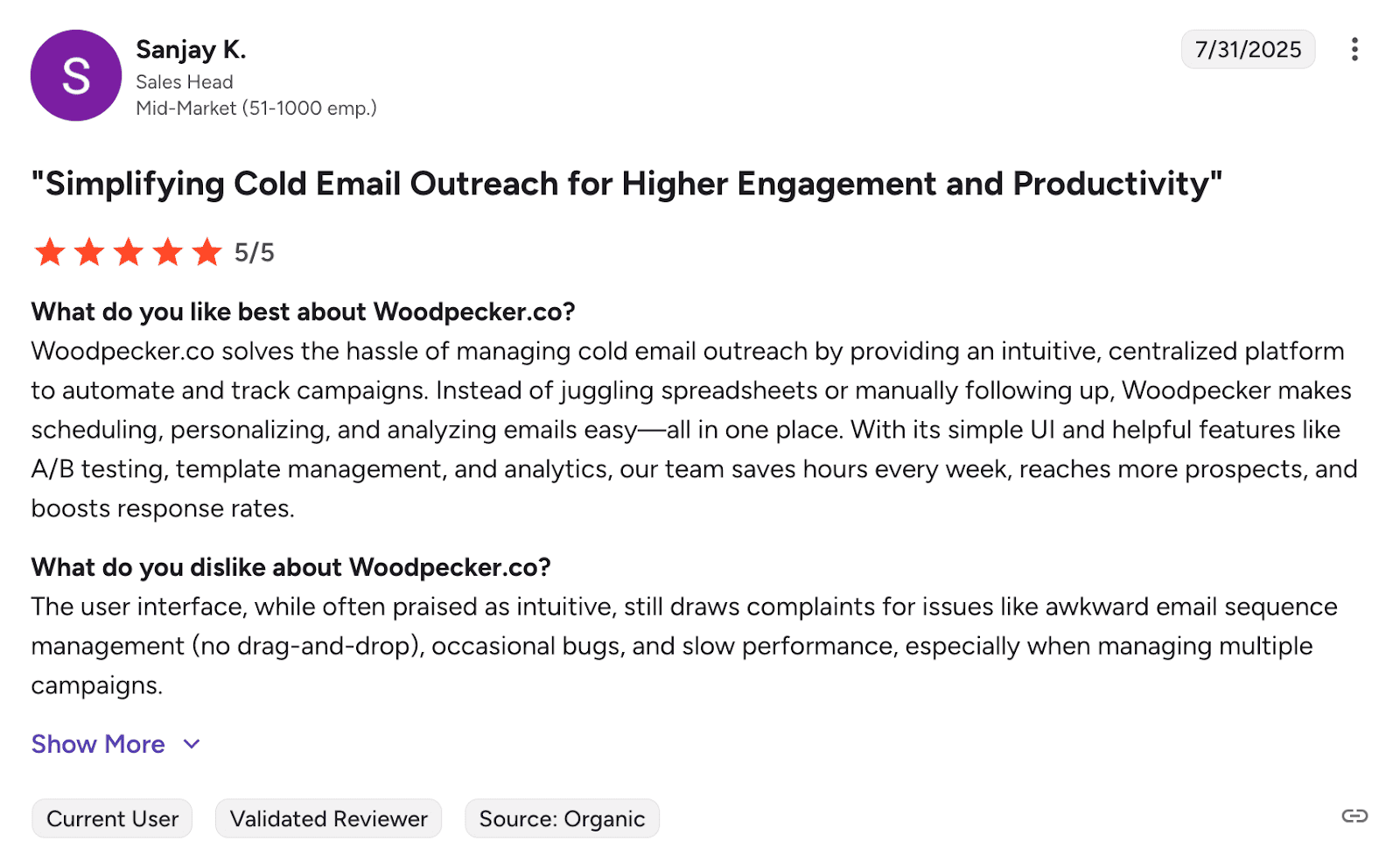 Acreditamos que esse software de cold email é uma ótima opção para equipes de vendas que desejam personalização com inteligência artificial, sequências multicanal e outros recursos específicos de engajamento, como enquetes ou incorporação de calendários. No entanto, a interface confusa e os pequenos problemas de sincronização que tornam os processos mais lentos podem ser um pouco irritantes.