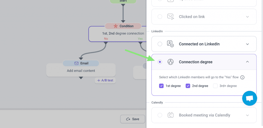 Na Snov.io, você pode segmentar campanhas automáticas no LinkedIn com base no grau de conexão. Essa funcionalidade ajuda a direcionar melhor as mensagens e torna o envio mais seguro ao excluir usuários de 3º grau.