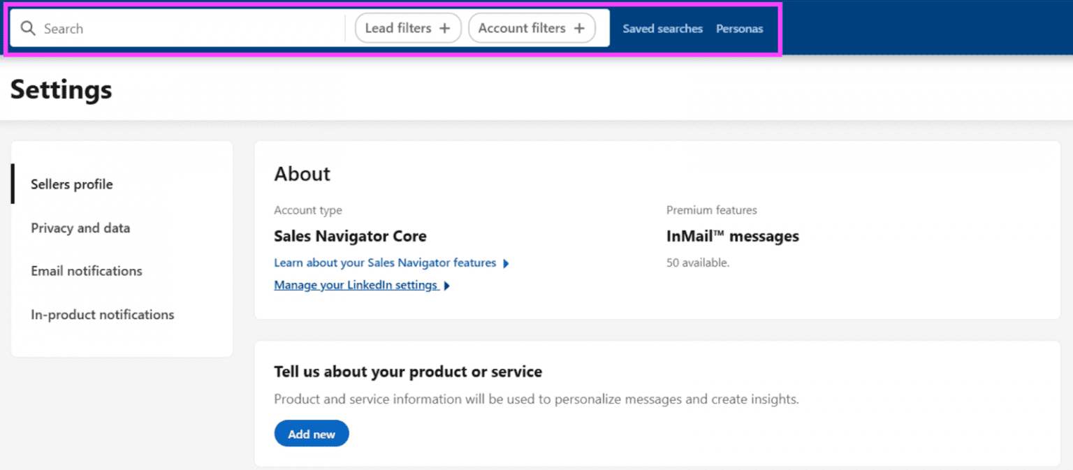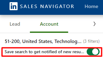 - Opcionalmente, salve até 50 buscas de leads e contas no Sales Navigator. Assim, você receberá alertas semanais com novos resultados e poderá identificar sinais de intenção de compra.