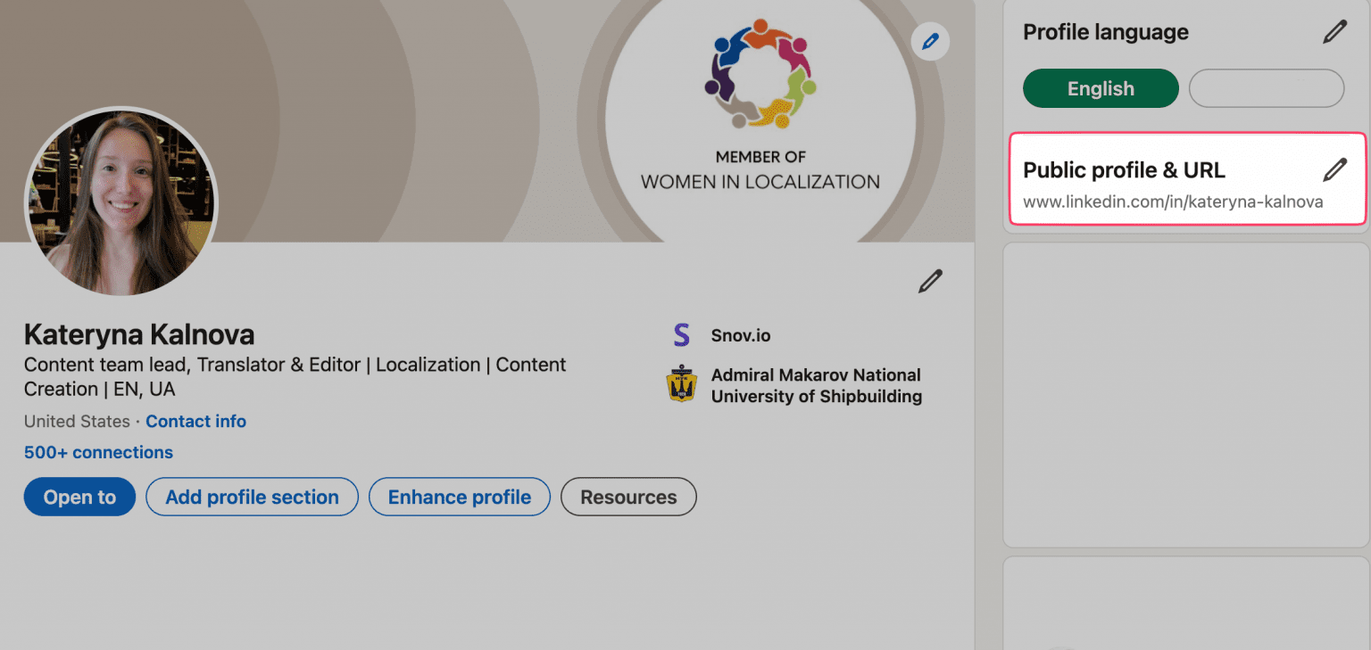Personalizar a URL do seu perfil no LinkedIn torna-o mais profissional e memorável. Um URL customizado é mais fácil de ser encontrado e melhora o SEO da sua página no LinkedIn, aumentando as chances de outros usuários descobrirem e se lembrarem do seu perfil. Para alterar o URL padrão para um personalizado, acesse seu perfil no LinkedIn. No lado direito da sua foto e do fundo da página, clique em Perfil público e URL.