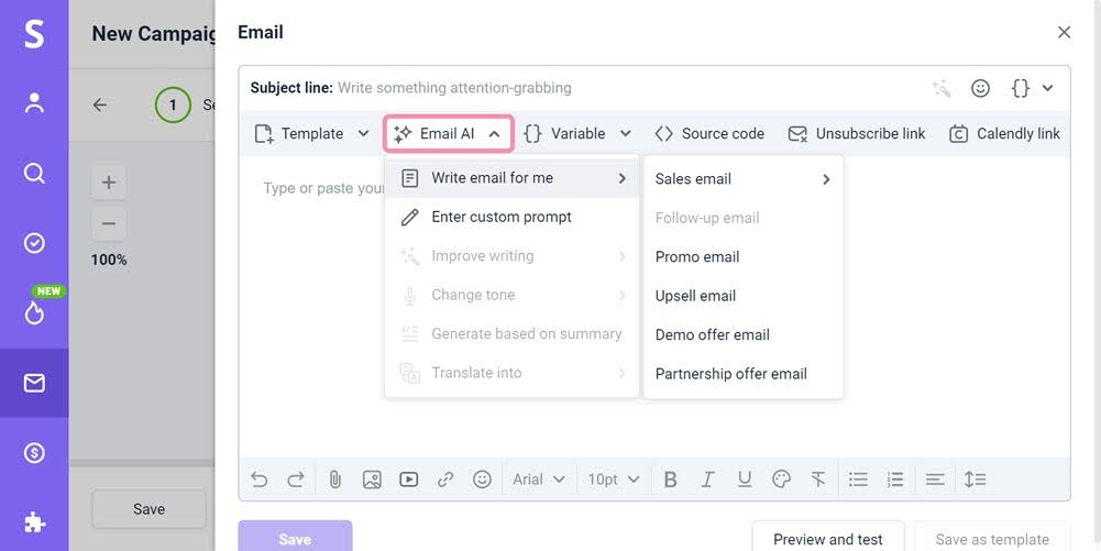 Running email marketing with ChatGPT opens up many options for enhancing campaign performance. With this AI email writing solution, you can: