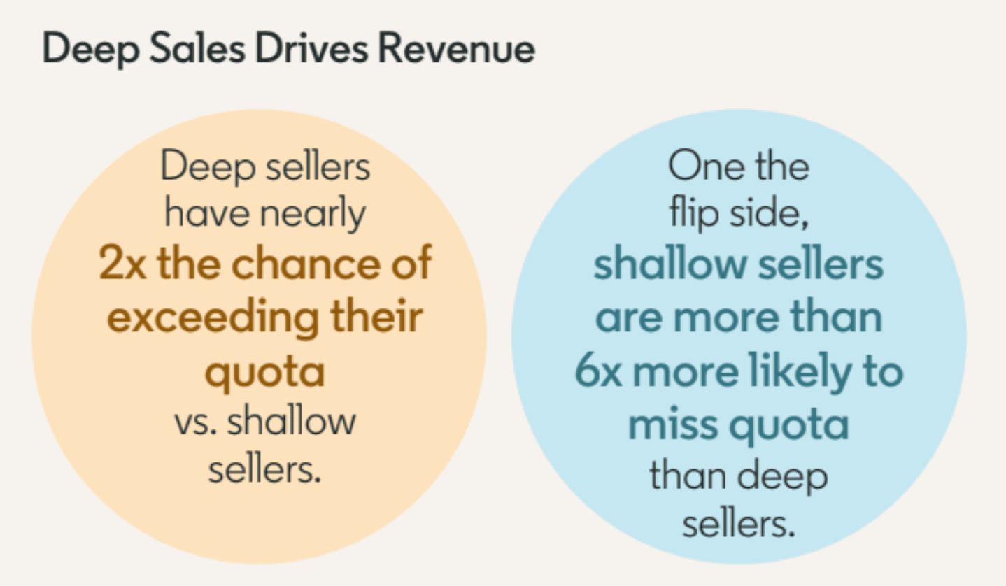 Simply put, deep sellers close more deals and even surpass their quotas by diversifying their approach. Personal branding can become an important component of deep selling because it builds trust, attracts the right audience, and supports more authentic, tailored communication.