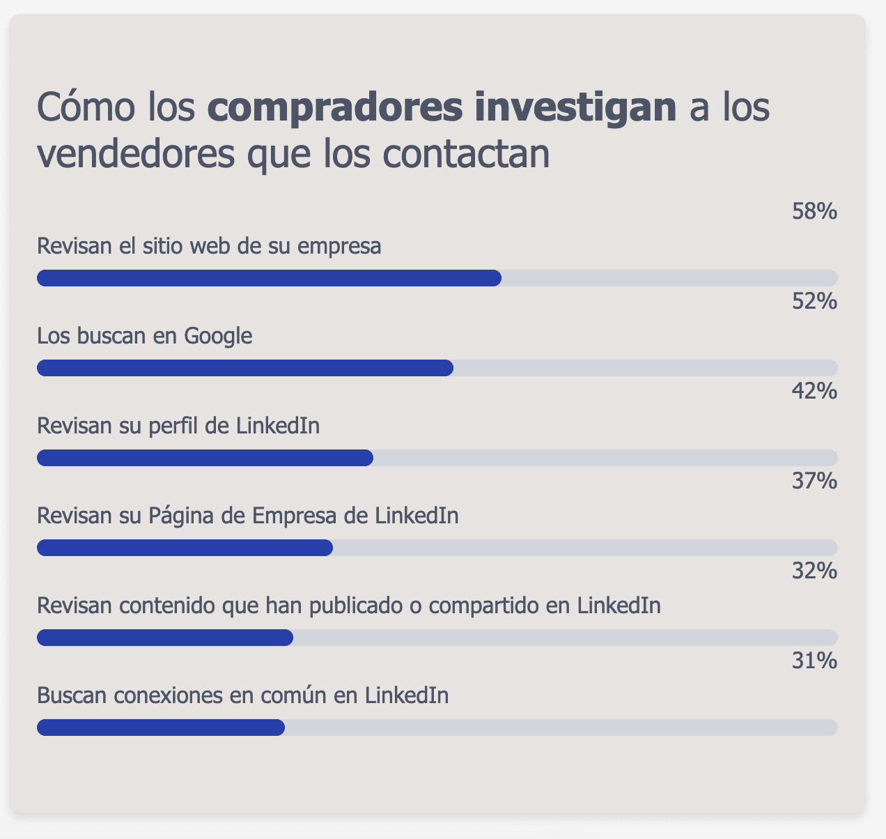 Algunos emprendedores descartan las publicaciones de LinkedIn como innecesarias, centrando su estrategia estrictamente en los mensajes. Sin embargo, según el reporte de LinkedIn, muchos prospectos revisarán tu perfil y el contenido que publicas en línea antes de interactuar contigo.