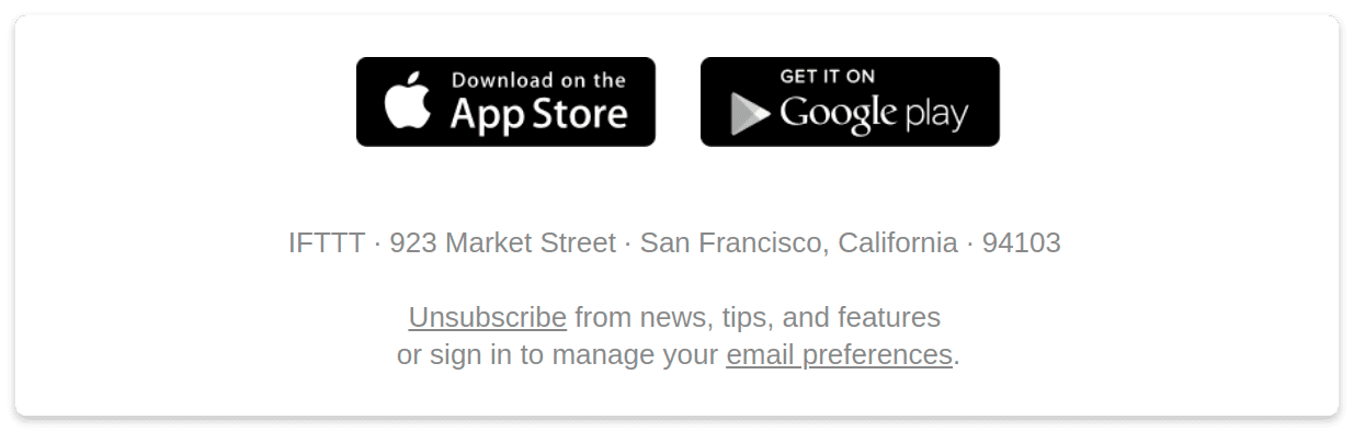 Asegúrate de que sea fácil elegir y cambiar la frecuencia. Una práctica común es incluir un enlace de “Actualizar preferencias de suscripción” al final de cada correo. Así lo hace IFTTT, por ejemplo.