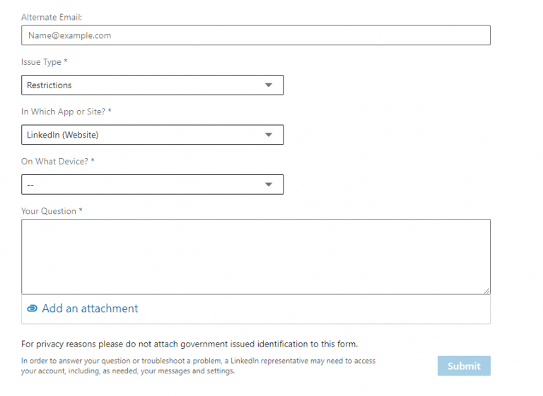 Contactar al soporte técnico puede ser útil si experimentas problemas con los límites de invitación o si tu cuenta es suspendida. Sin embargo, el soporte de LinkedIn no revela ninguna información adicional sobre el tipo o la razón de la restricción de invitación en tu cuenta. Esa es simplemente su política. 🤷🏻
