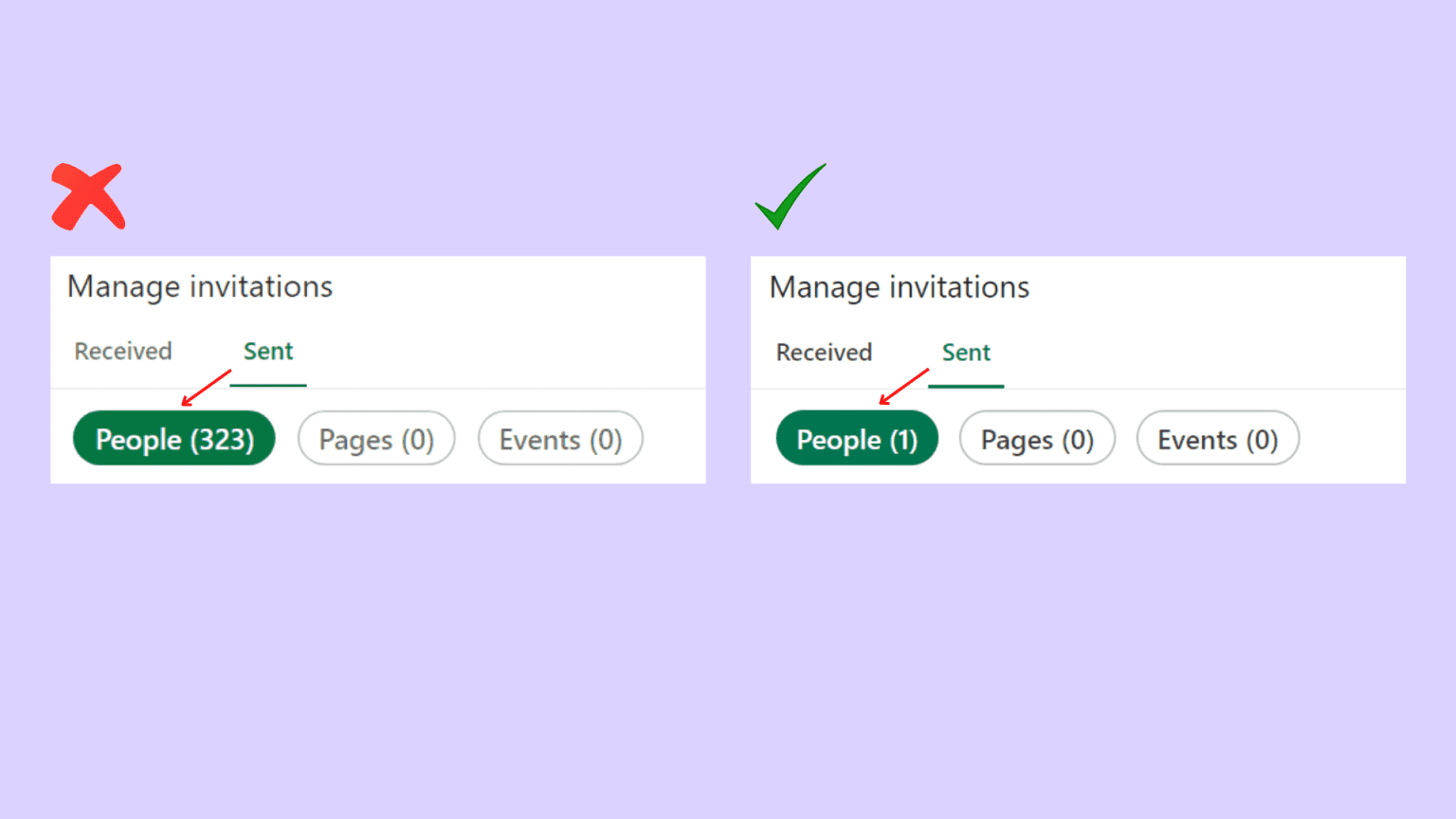 - Revisa tus invitaciones pendientes y retira todas excepto las 500 más recientes. Recuerda, no podrás volver a enviar una invitación al mismo destinatario por hasta tres semanas.