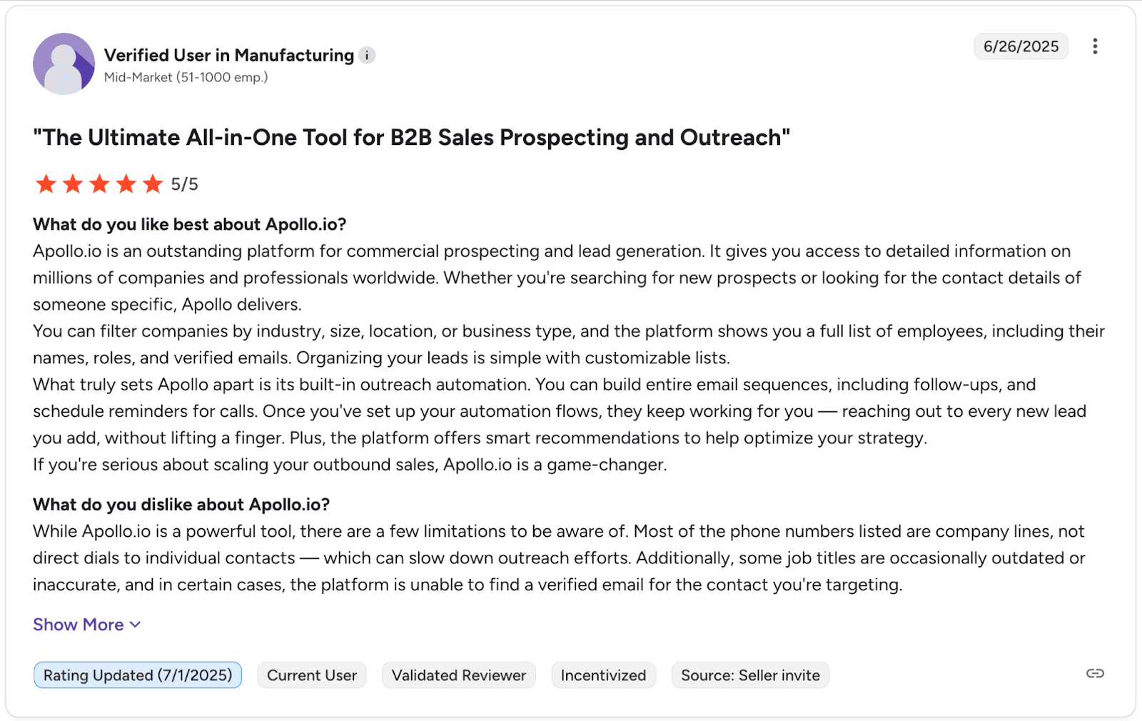 Lo que dicen los usuarios sobre Apollo.io:
