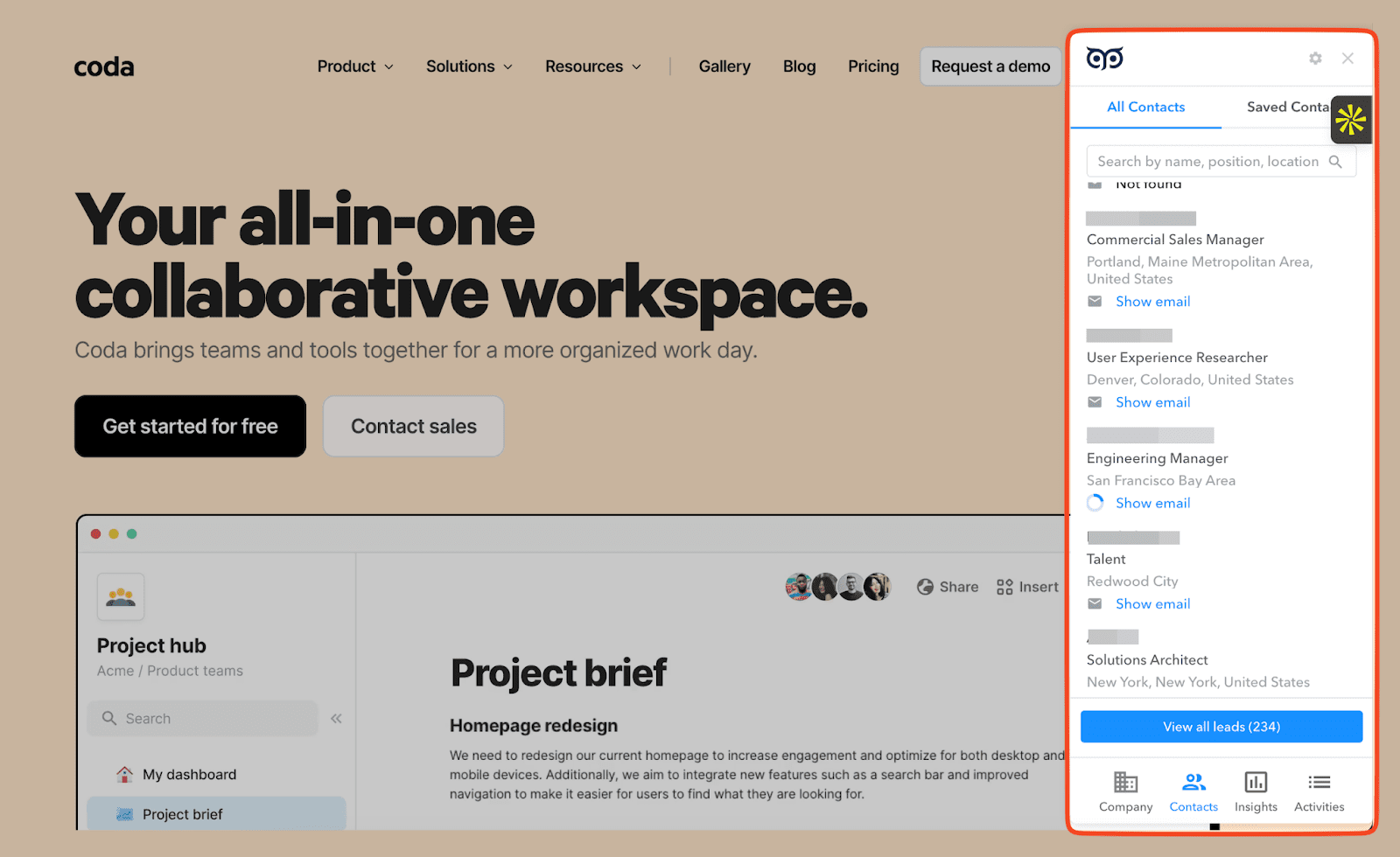 - Extensiones de Chrome: Encuentra leads específicos fácilmente con un solo clic desde sitios web o LinkedIn.