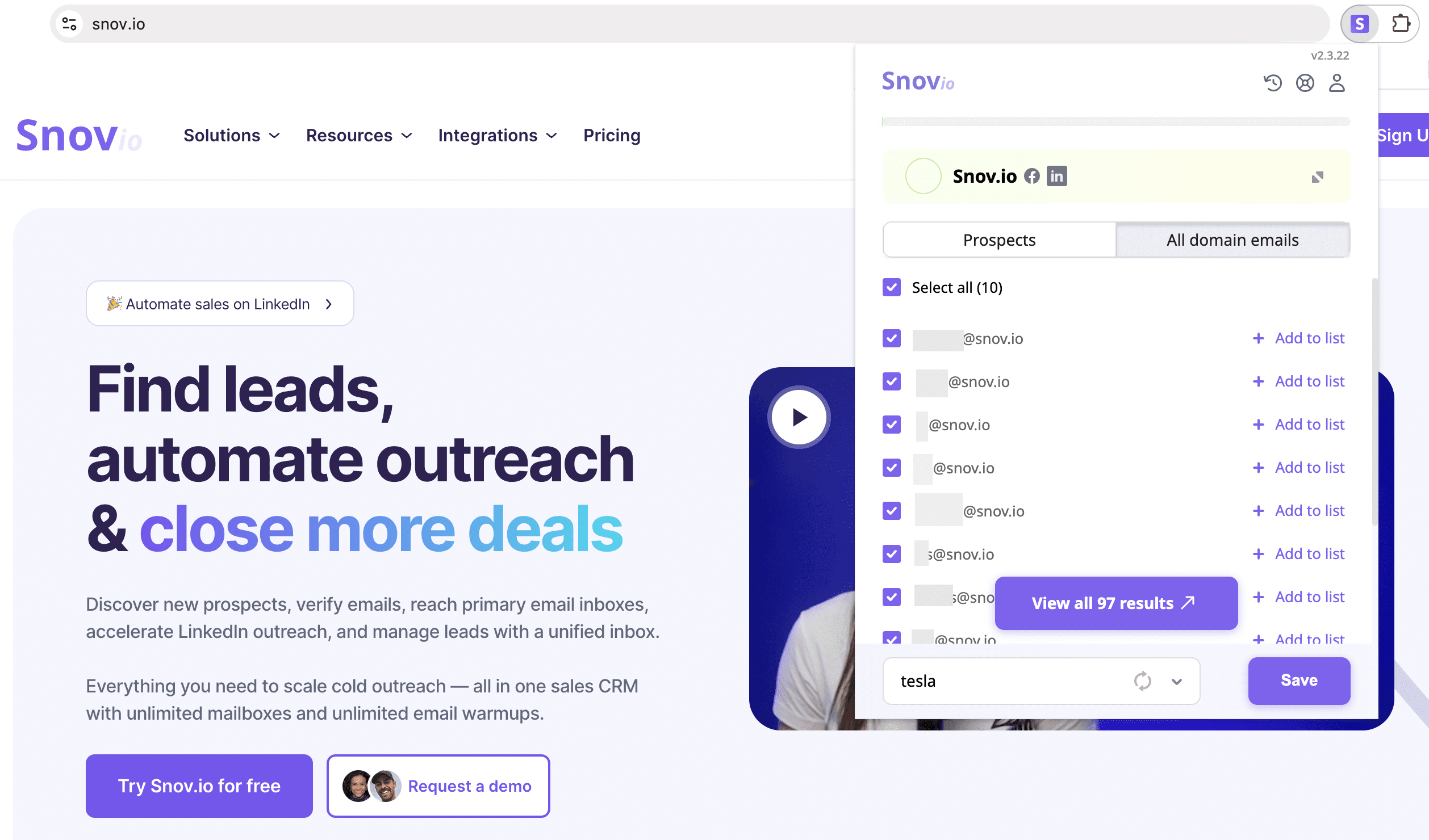 Start by building a reliable prospect list for your campaign. Collect verified email addresses based on names, company domains, or social links with Email Finder. Along with addresses, you receive extra data like job position, location, industry, and more, allowing you to filter your leads and create highly targeted campaigns.