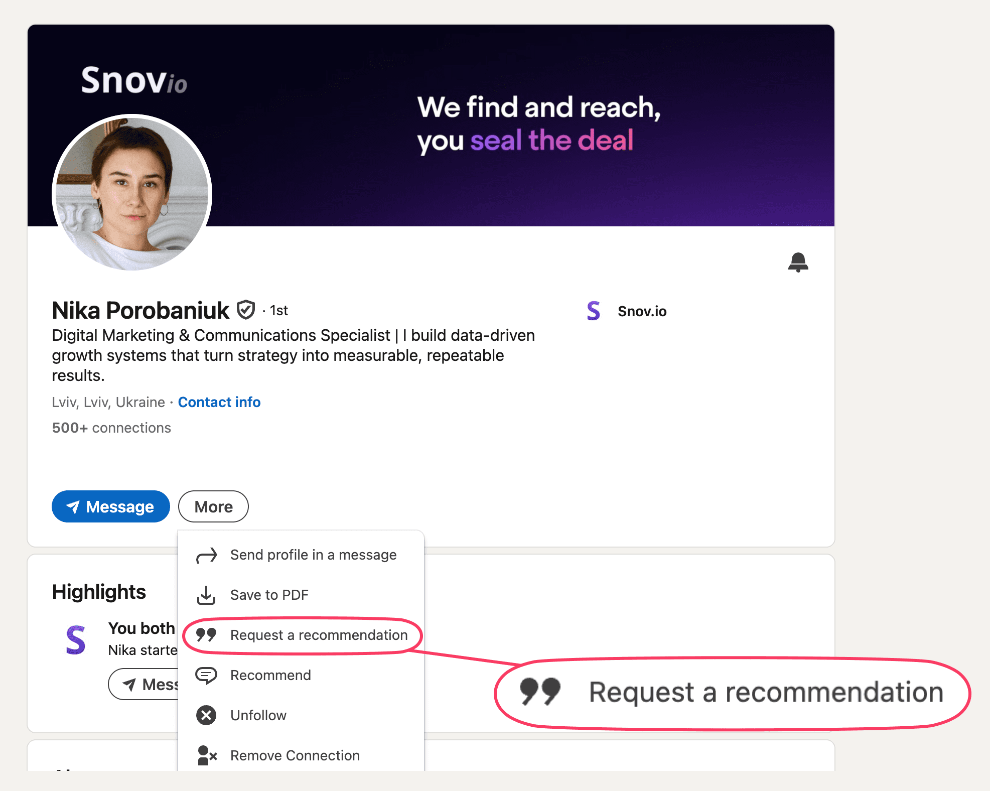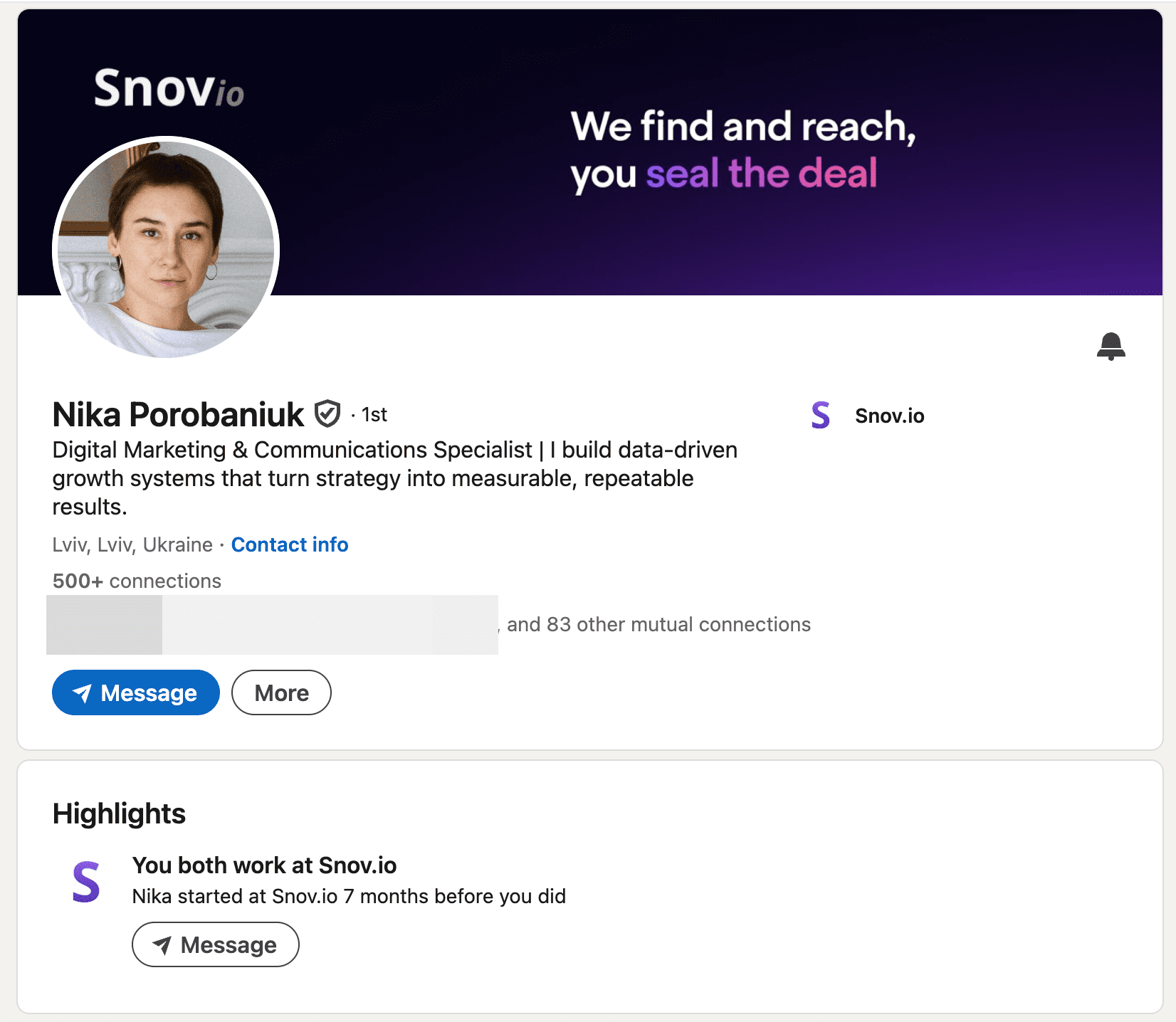 Before sending your message, take a moment to research your prospect on LinkedIn. You can quickly find details like their current role, career, and interests. The platform usually highlights the details you have in common, such as skills, educational institutions, and places of work.