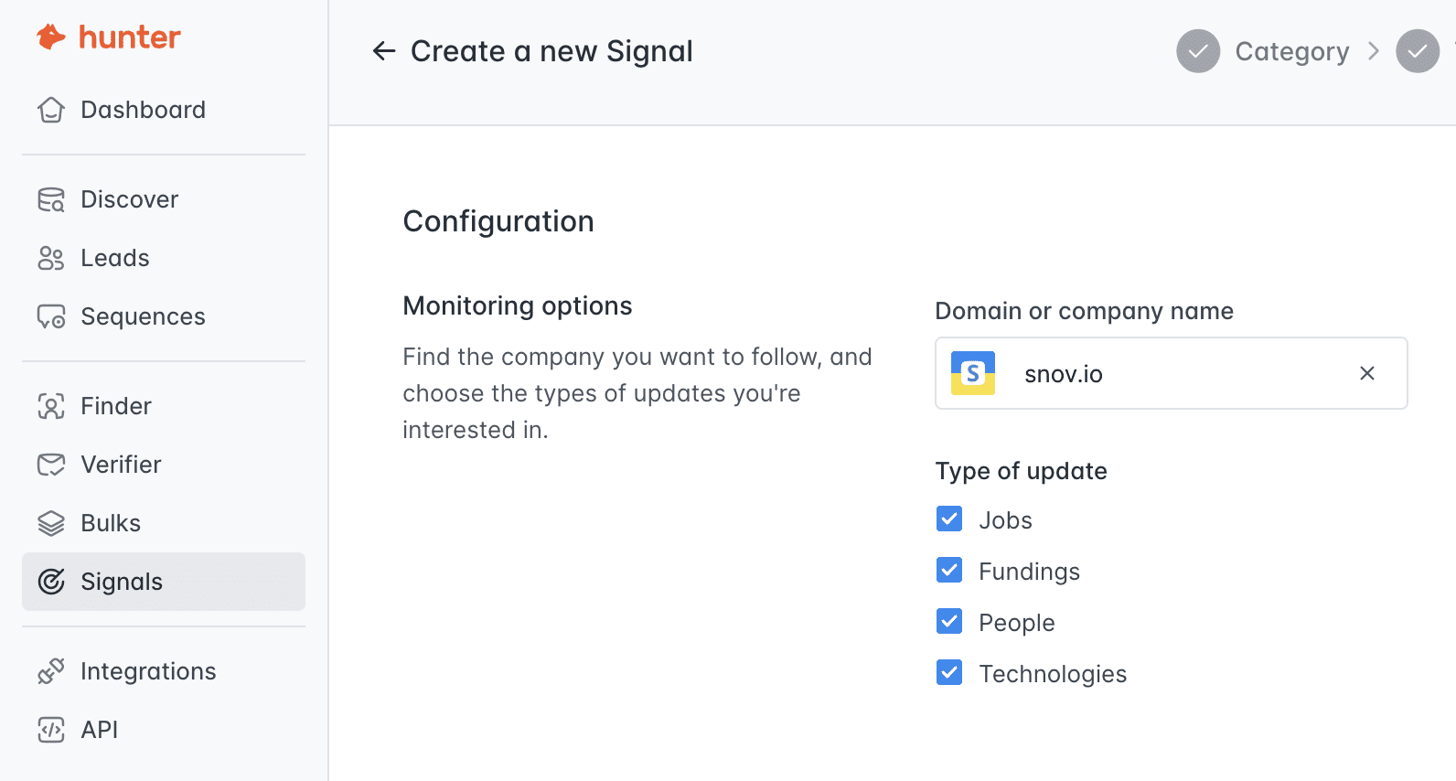 This Hunter.io feature highlights companies showing buying intent through hiring or growth activity.