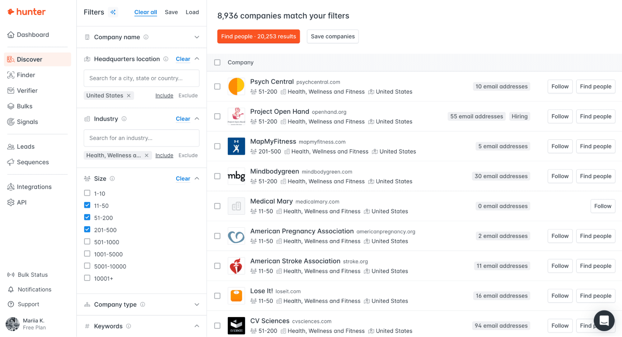That’s basically a B2B database where you can find companies that fit your ICP (Ideal customer profile) and view known addresses of their employees. All you need to do is configure filters.