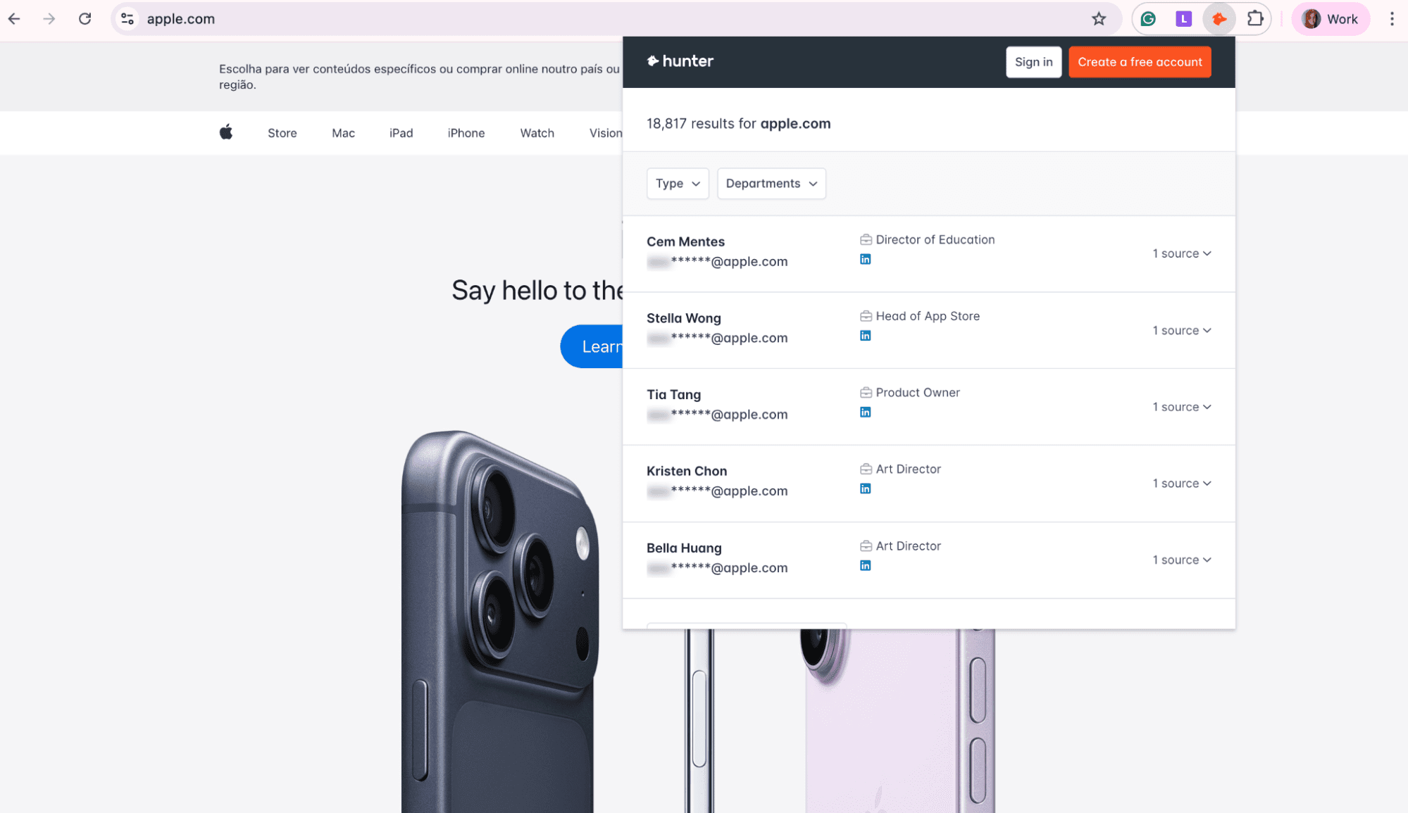 Just add the Hunter.io extension to your Google Chrome browser and prospect on the go.