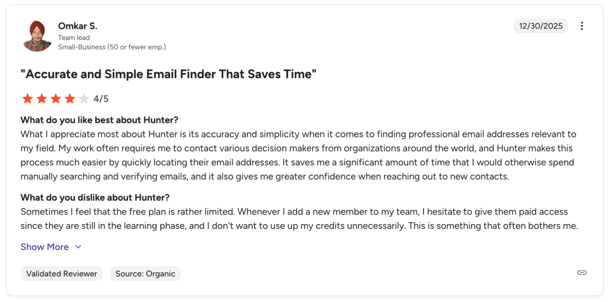 My experience with Hunter is subjective, of course, so I visited G2 to gather additional feedback from users who have been with this platform for longer. Needless to say, most resonated with my own thoughts.