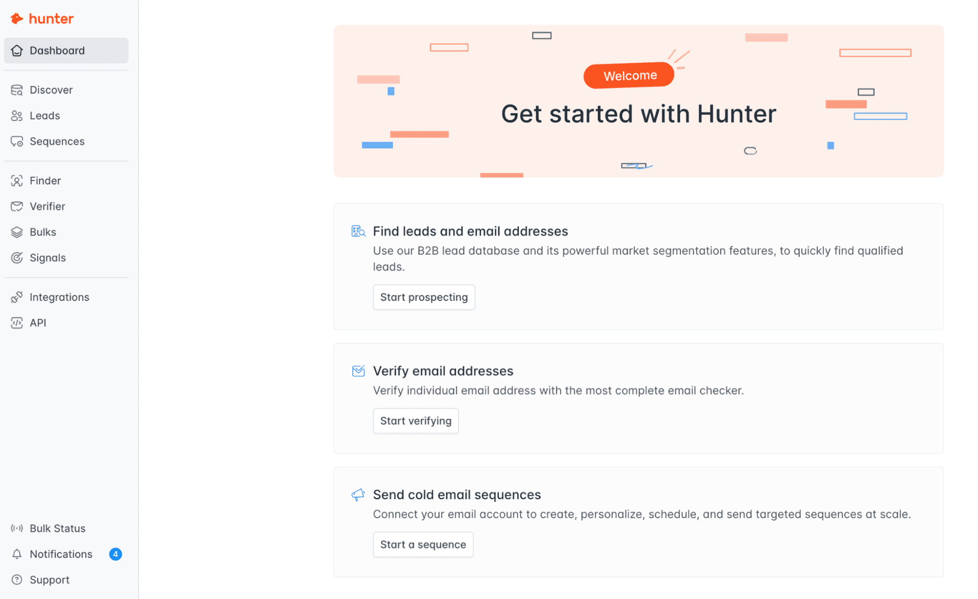 - Hunter.io features. I tested the email finder by sourcing about 50 email addresses across multiple B2B segments, including SaaS and professional services. I also evaluated how it verifies email addresses and its core campaign-building functionality.