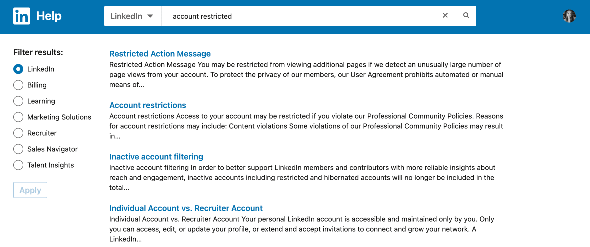 LinkedIn restriction types