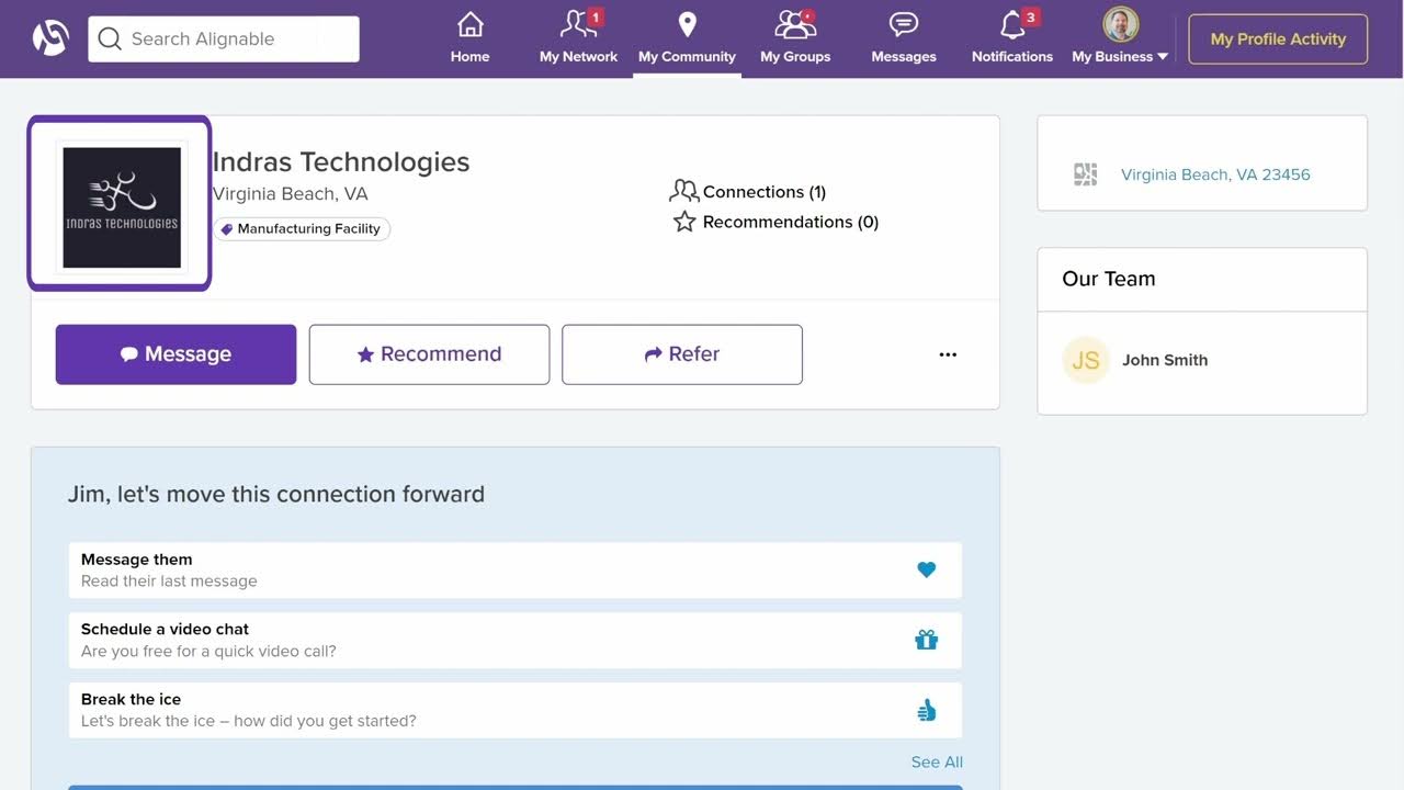 Alignable offers sales professionals a platform to build relationships and generate leads with small businesses in targeted locations.
