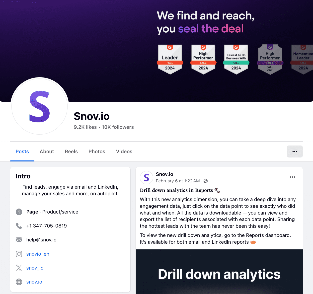 Just like on LinkedIn, companies can showcase their brand, share content, and interact with followers through the business pages. You can connect with prospects and send personalized messages directly. You can also participate in Facebook groups to engage with niche audiences and build a high-quality prospect list.