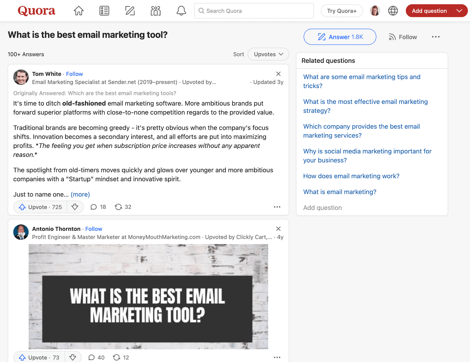 Best for: industry experts and content marketers who want to establish authority by answering relevant questions; B2B professionals seeking to drive inbound leads through in-depth, helpful responses.